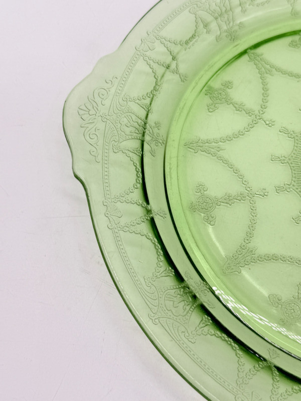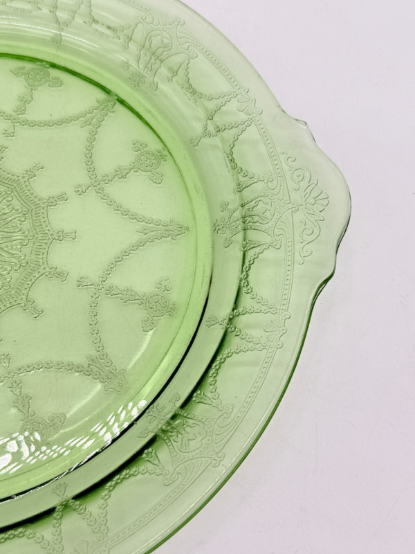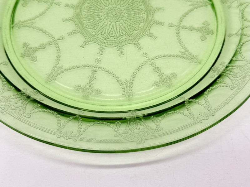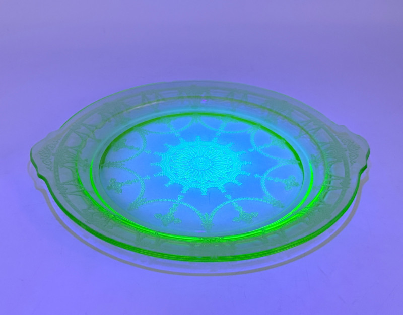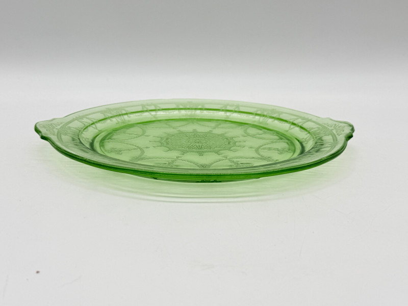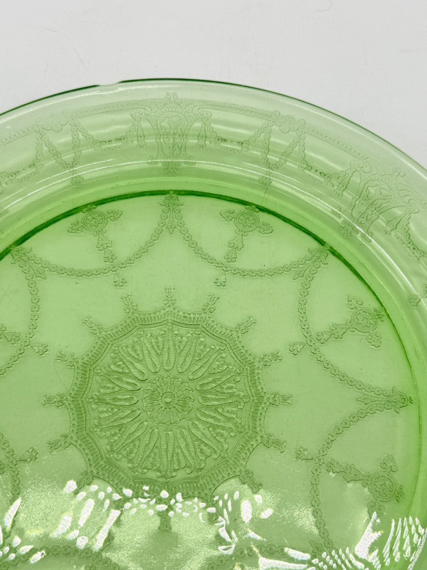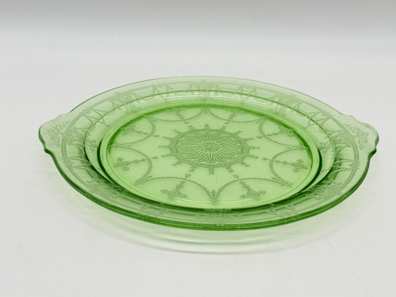 Lot # 18 - Vintage Anchor Hocking Cameo Green Uranium Glass Cake Plate