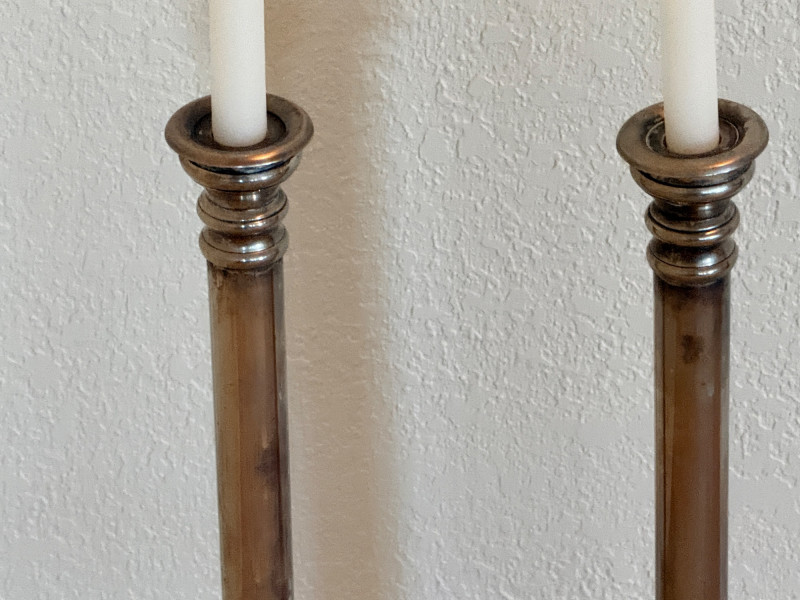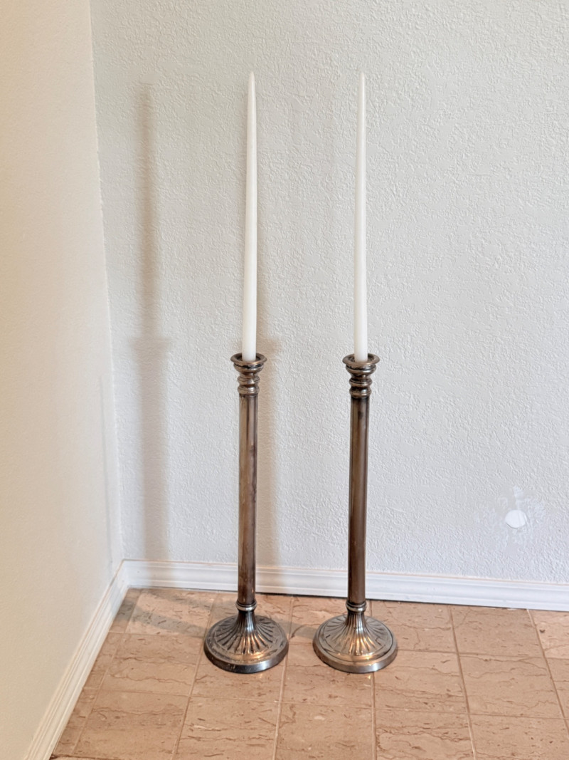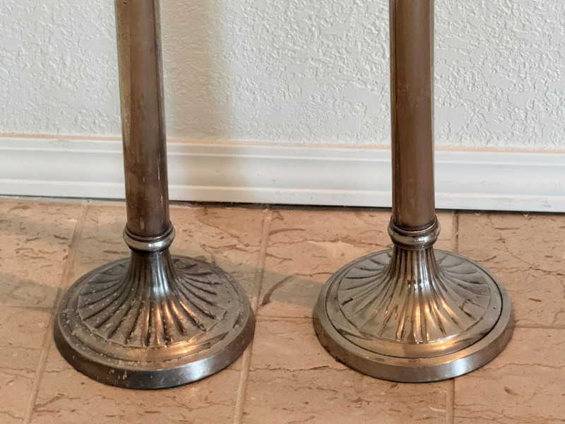 Neoclassical Column-Style Taper Candlestick Holders Disclaimer: We do not test the metals of the items listed for auction. By placing a bid, you acknowledge and agree that you are purchasing the item "as is" and without any guarantee of metal quality. We do not offer refunds based on metal content or purity.