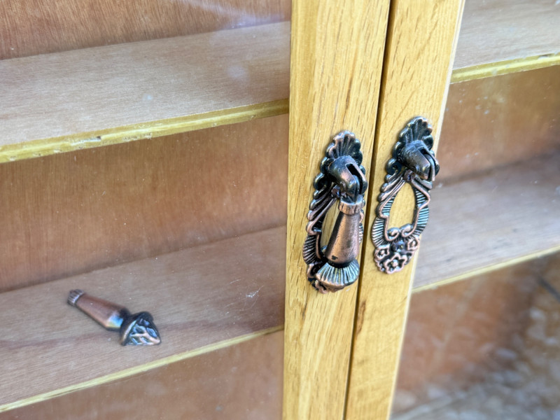 Lot # 107 - Wooden Hanging Curio Cabinet w/ Glass Doors