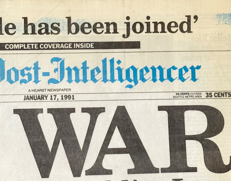 Lot # 7 - Seattle Post Intelligencer - At War - Jan 17, 1991