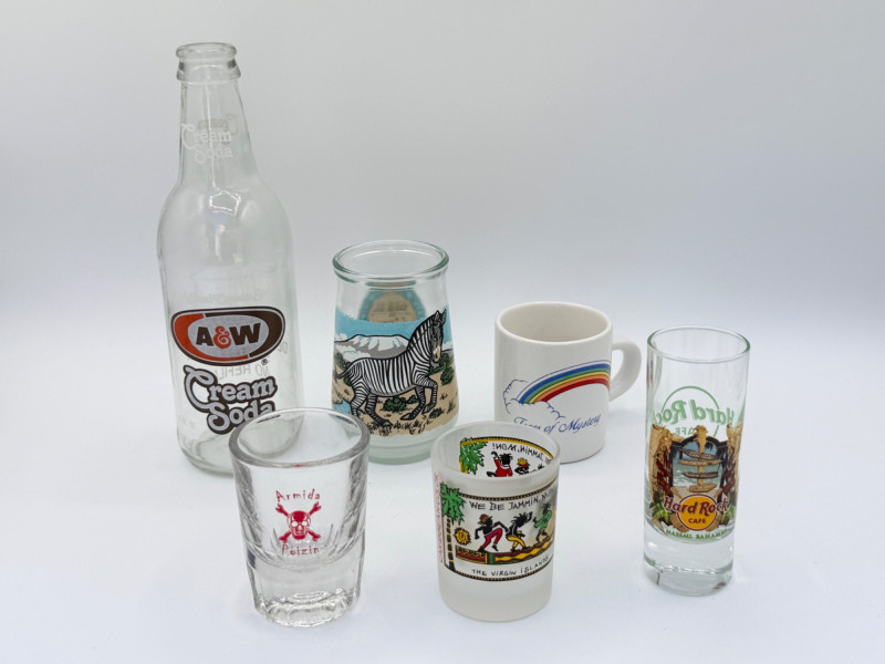 Mix of A&W Bottle, Glasses & Shot Glasses