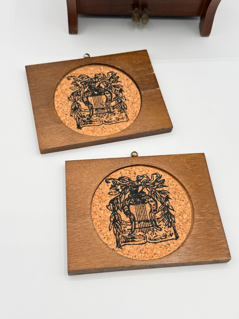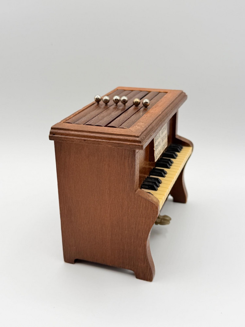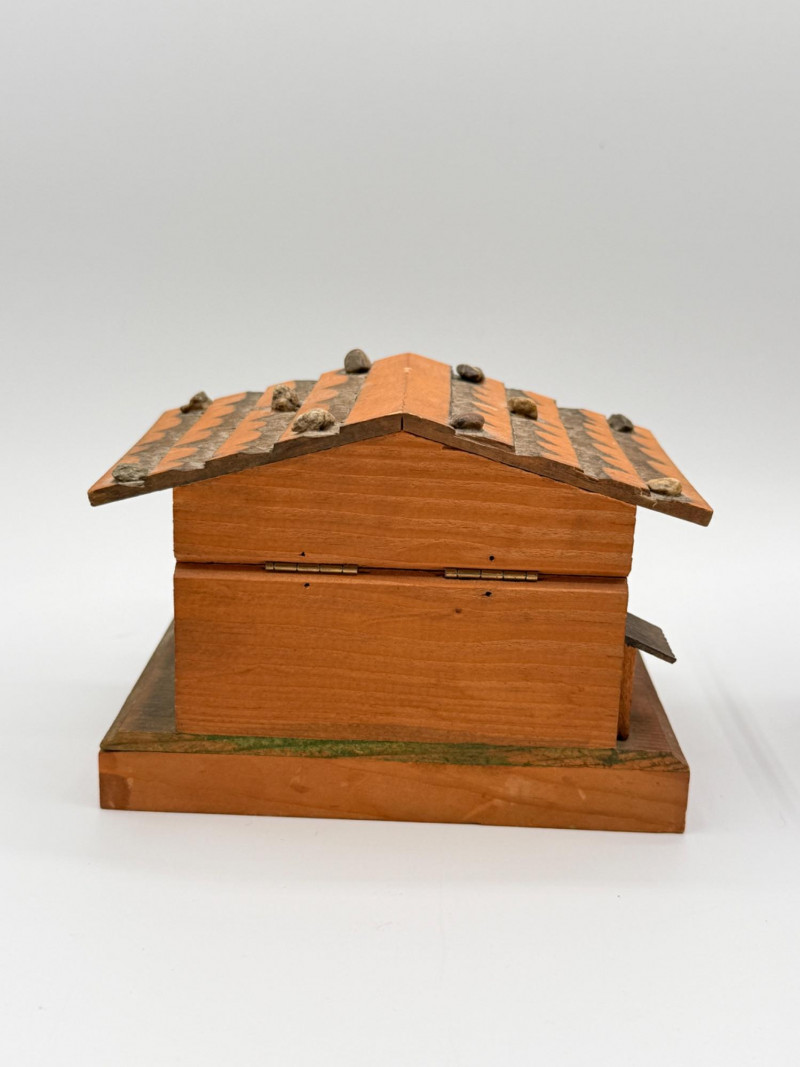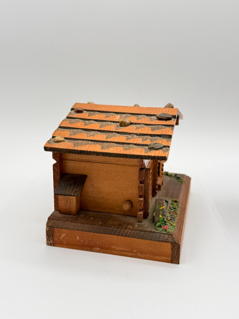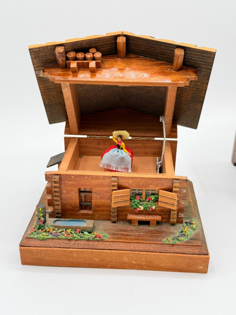 Vintage Miniature Swiss Chalet Music Box & Enesco Piano Coaster Holder