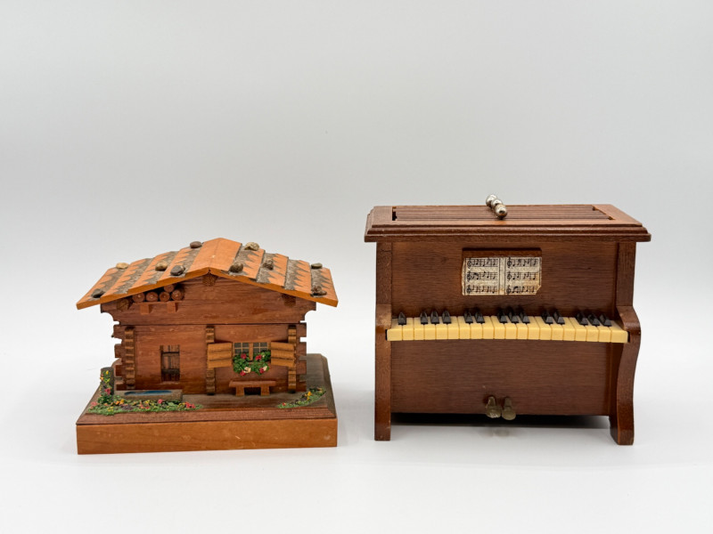 Lot # 122 - Vintage Miniature Swiss Chalet Music Box & Enesco Piano Coaster Holder