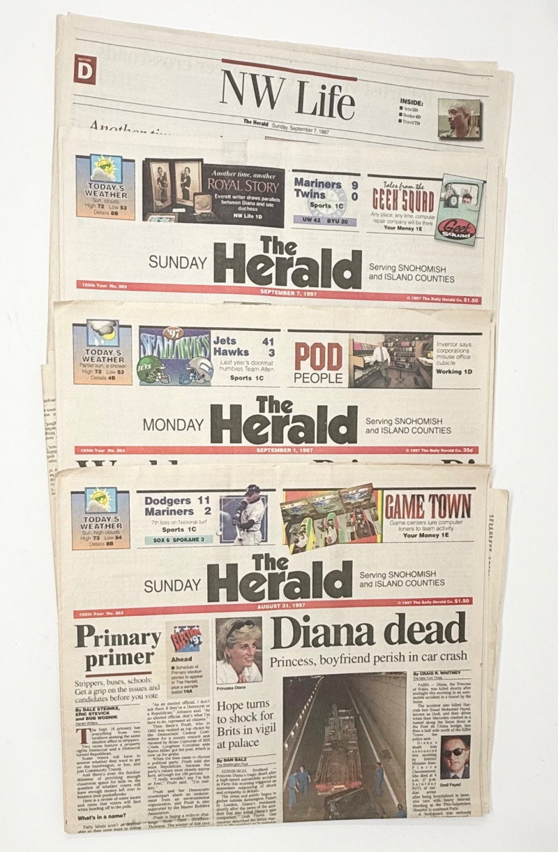 Lot # 35 - Princess Diana's Death Historical Newspapers - The Herald