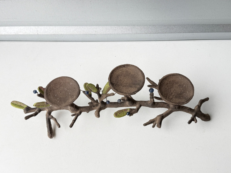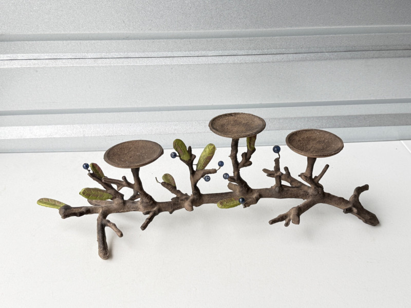 Lot # 134 - Vintage Cast Iron Blue Berry Branch 3-Pillar Candle Holder