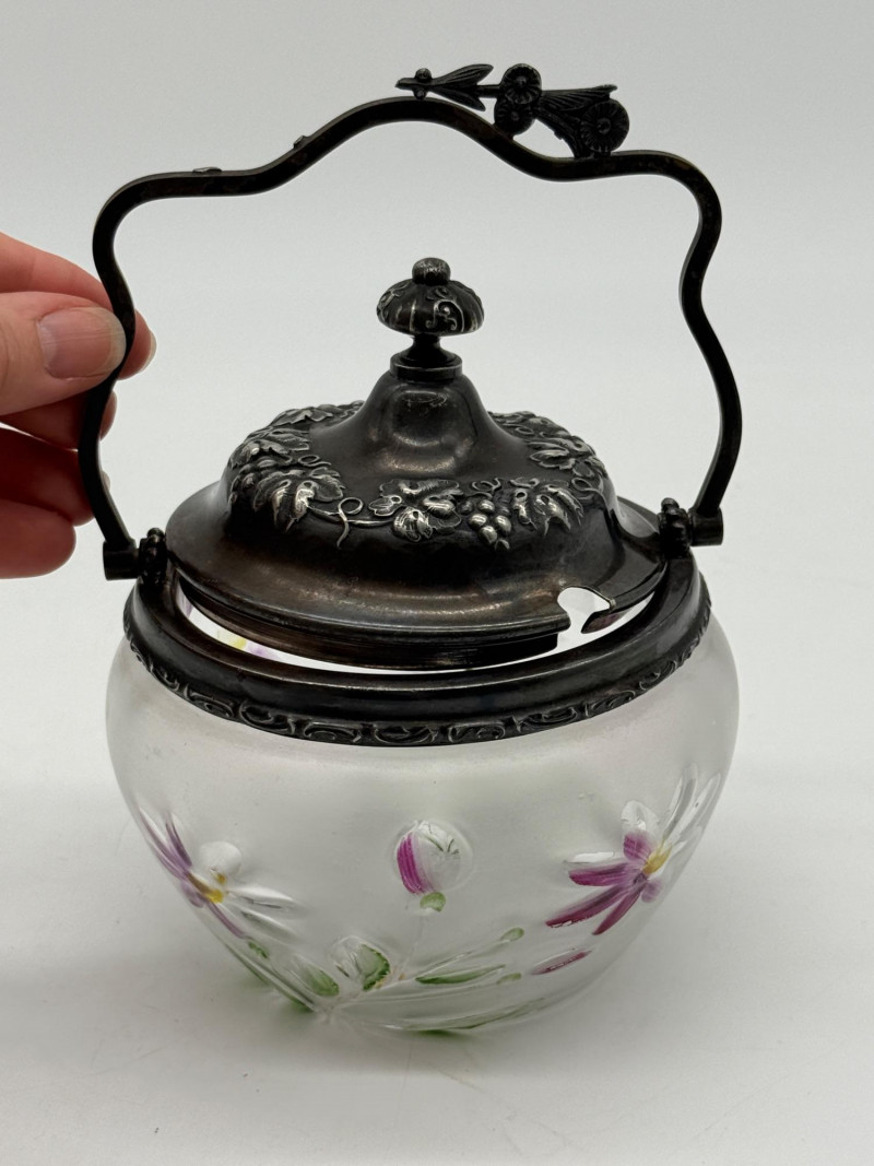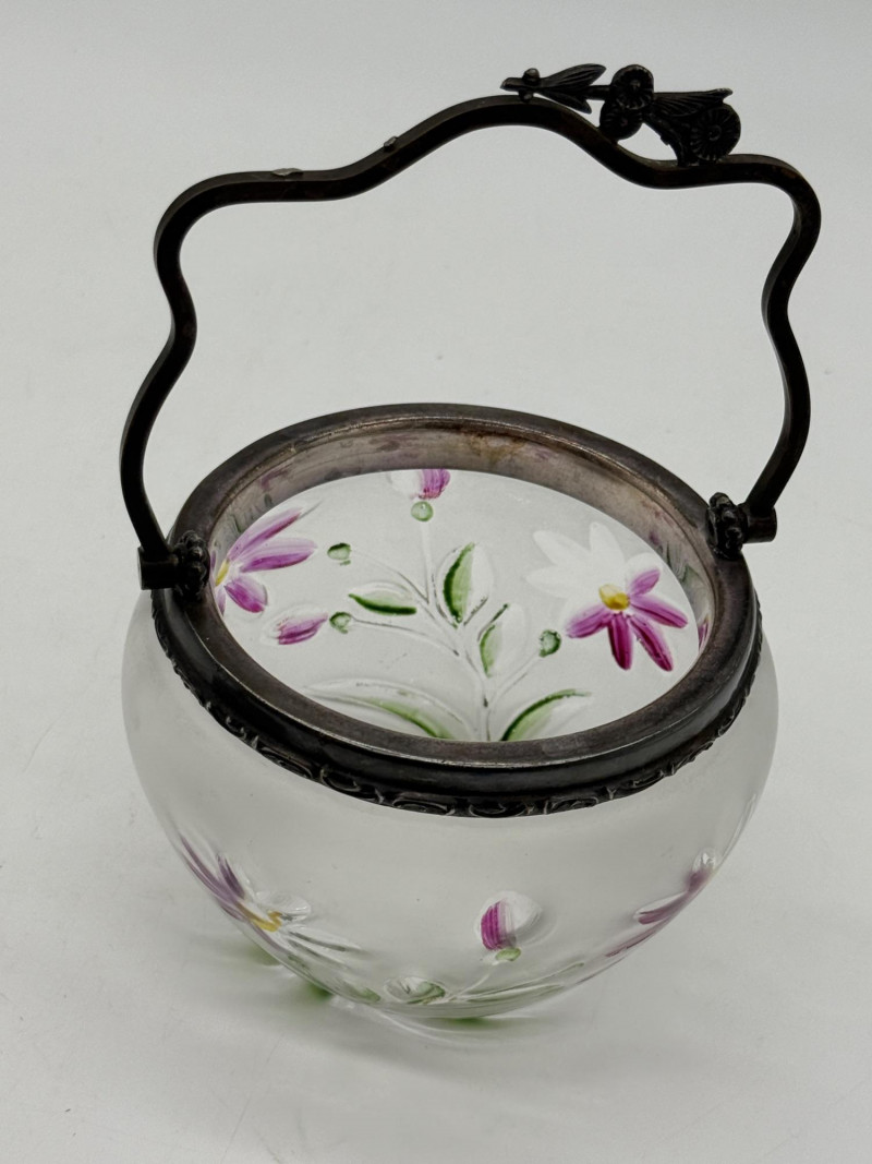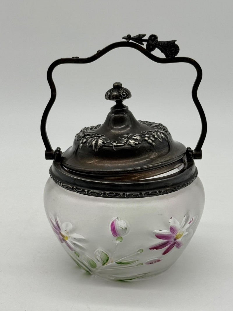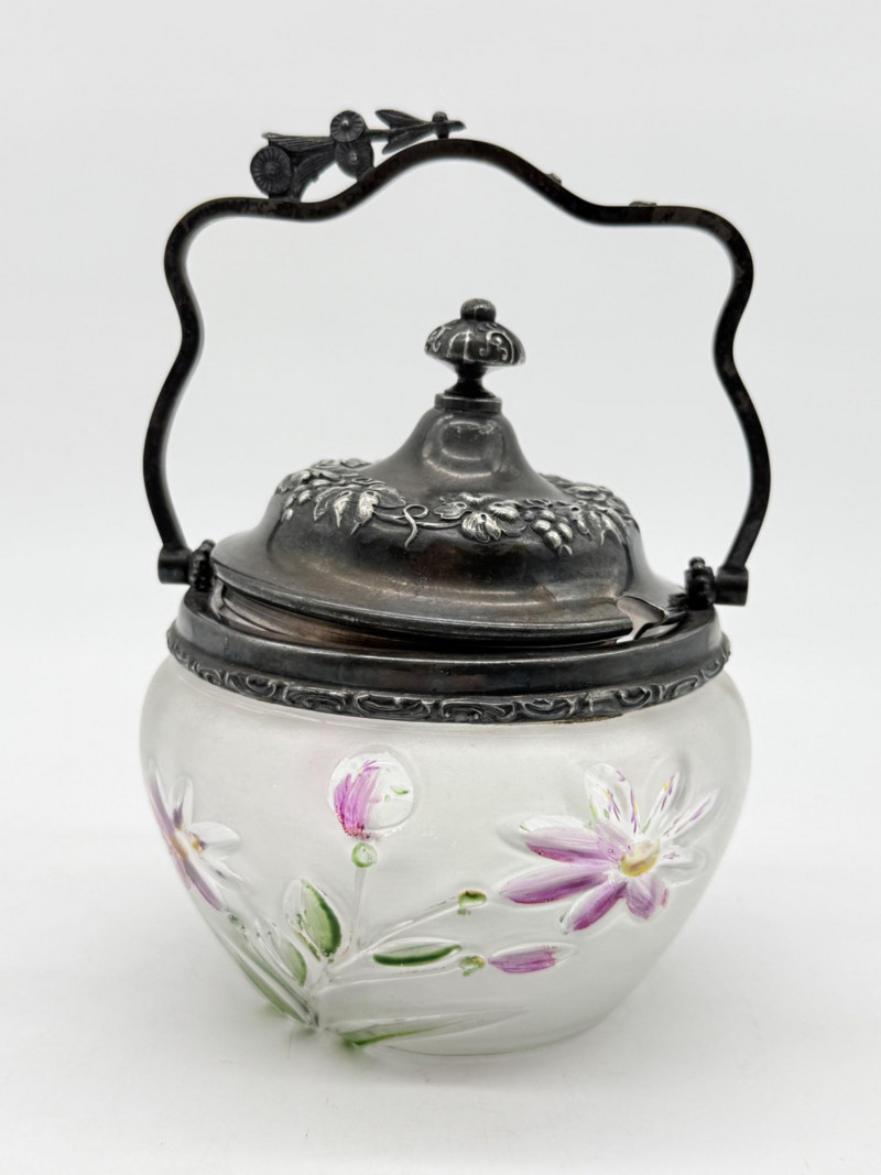 Lot # 22 - Antique Silver-Plate Mounted Satin Glass Sugar Bowl