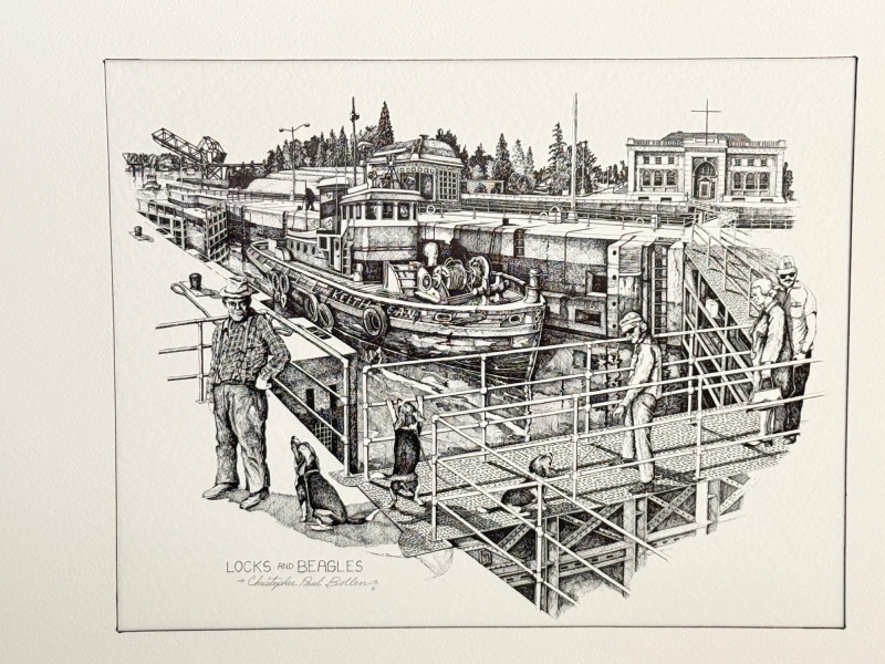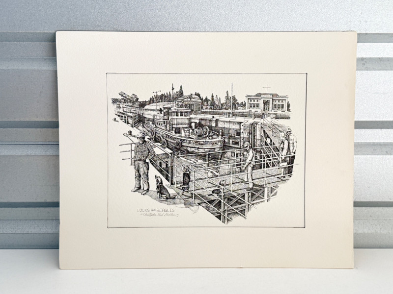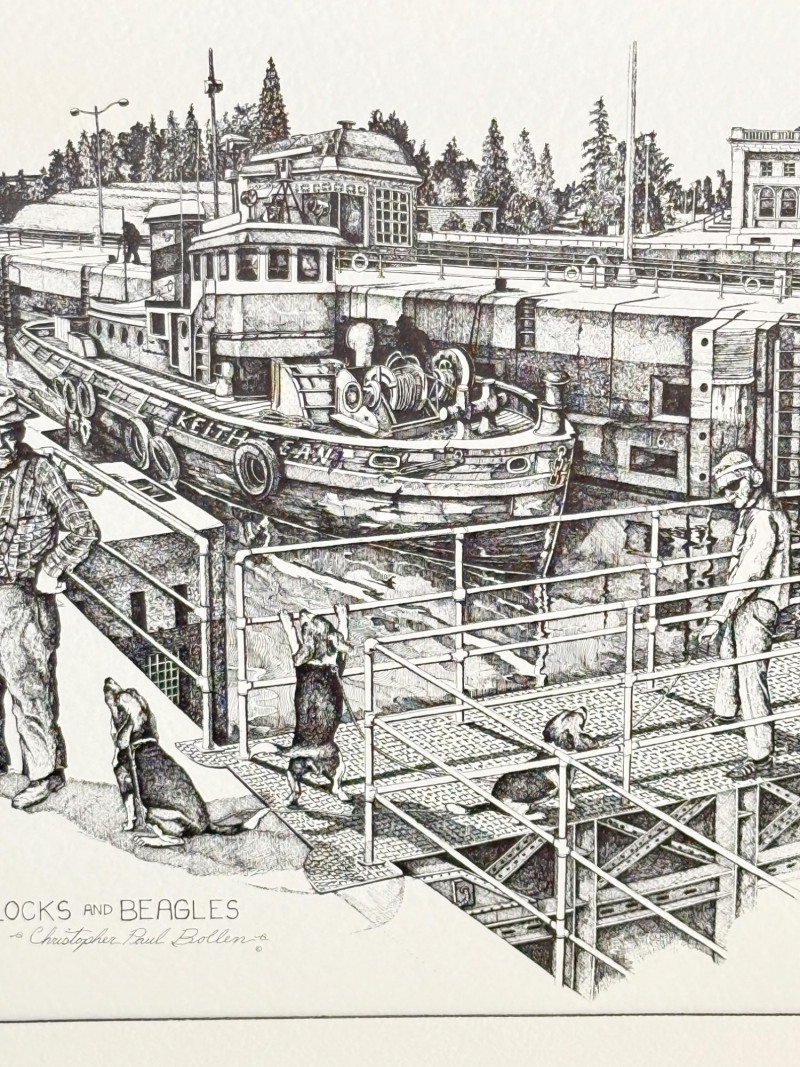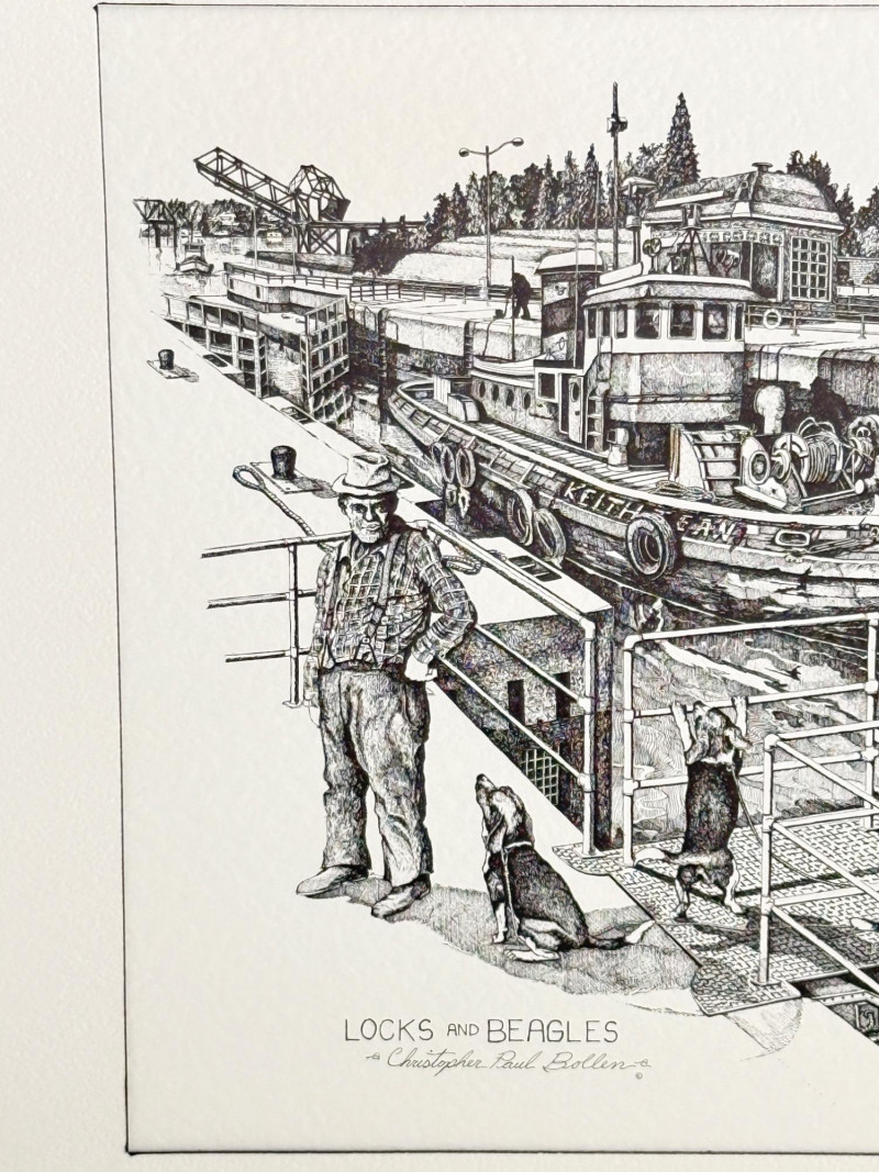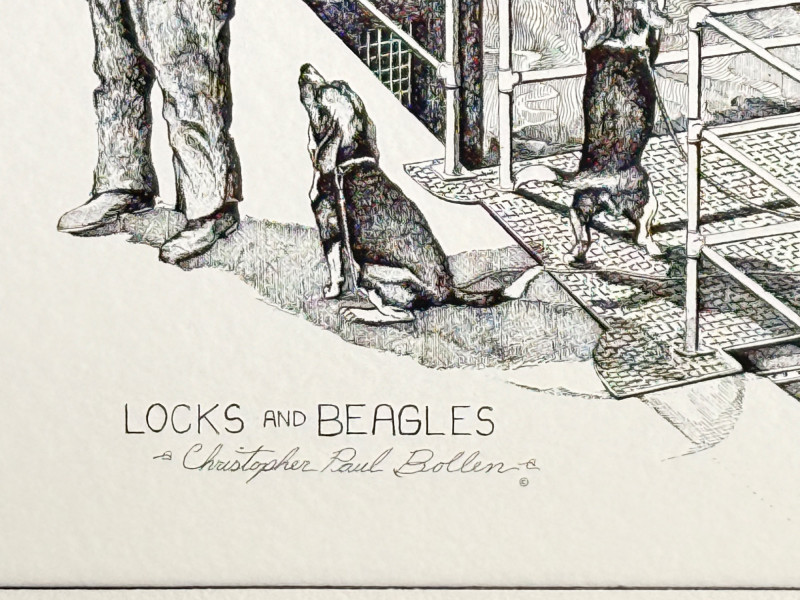 Lot # 83 - Christopher Paul Bollen Ink Drawing "Locks & Beagles" Print