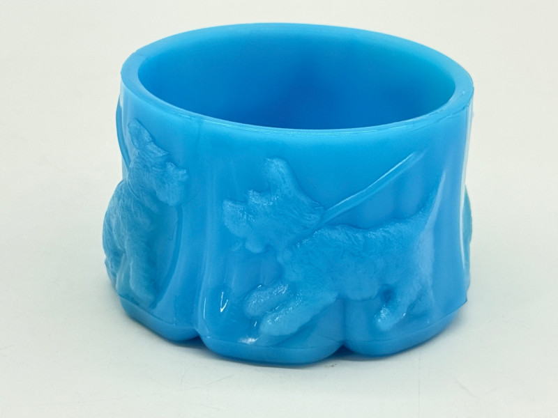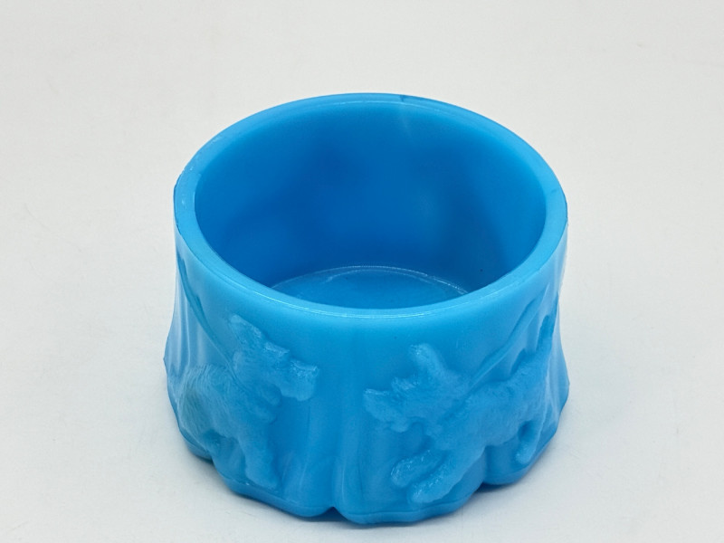 Vintage Akro Agate Blue Slag Glass Power Jar Base w/Scottie Dogs