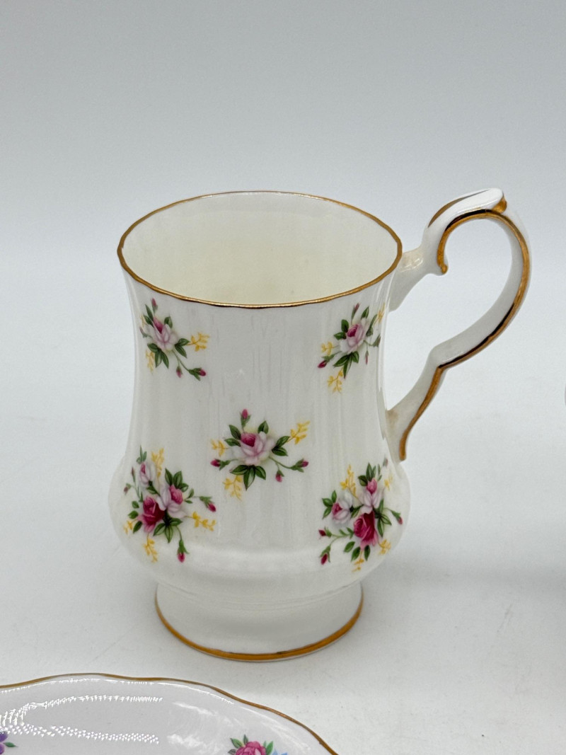 Mix of Vintage Ceramic Tea Pot, Creamer, Tea Cups & Saucers