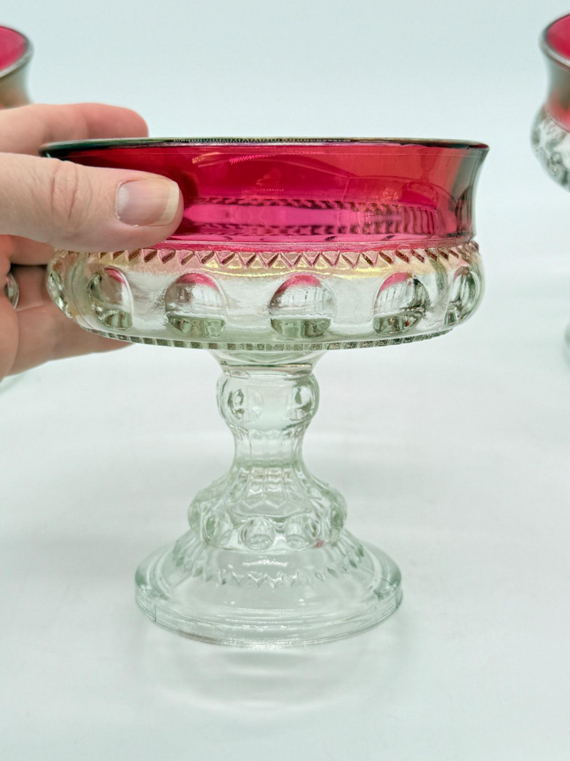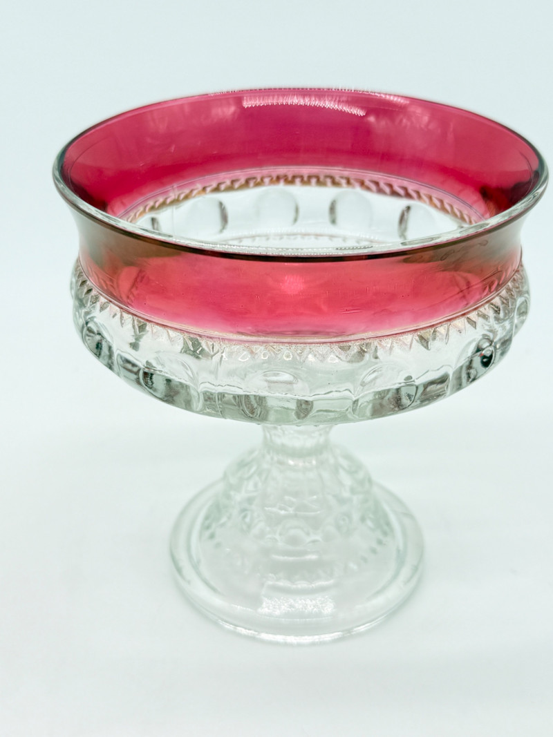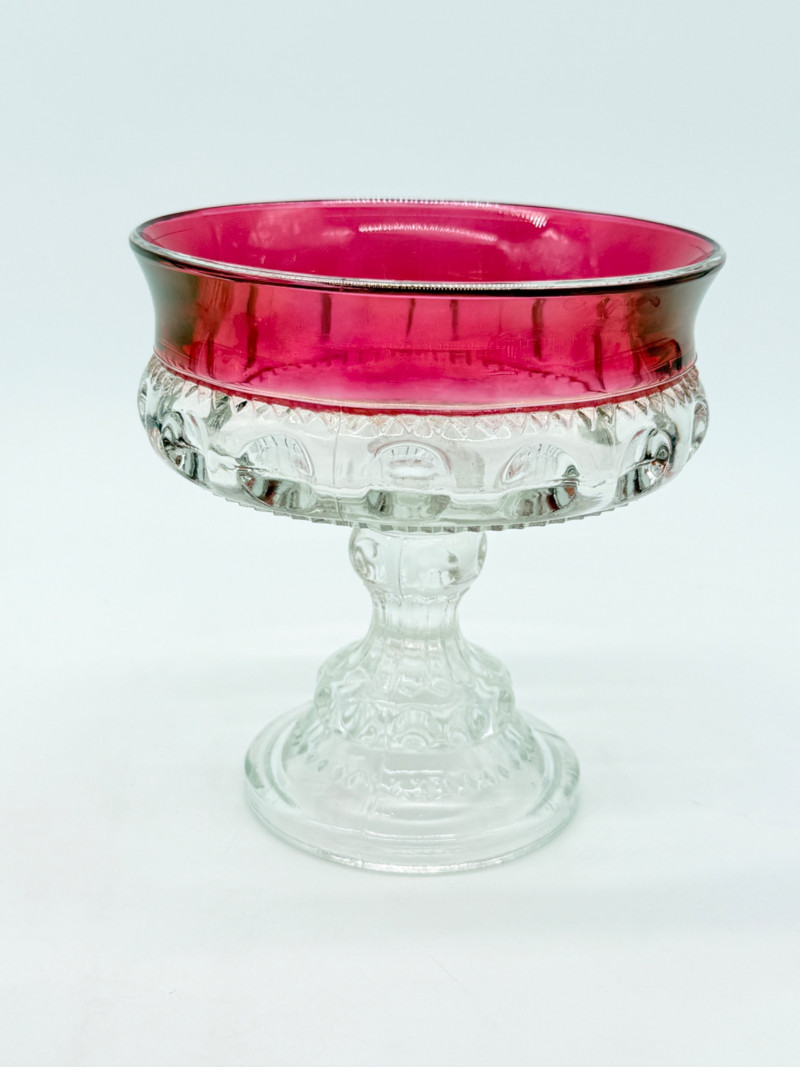 Vintage Tiffin-Franciscan Kings Crown Ruby Flashed Top Round Compote