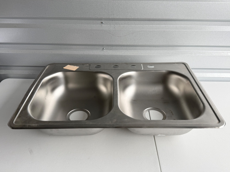 Lot # 173 - Glacier Bay 33" Drop In Double Bowl Stainless Steel Kitchen Sink