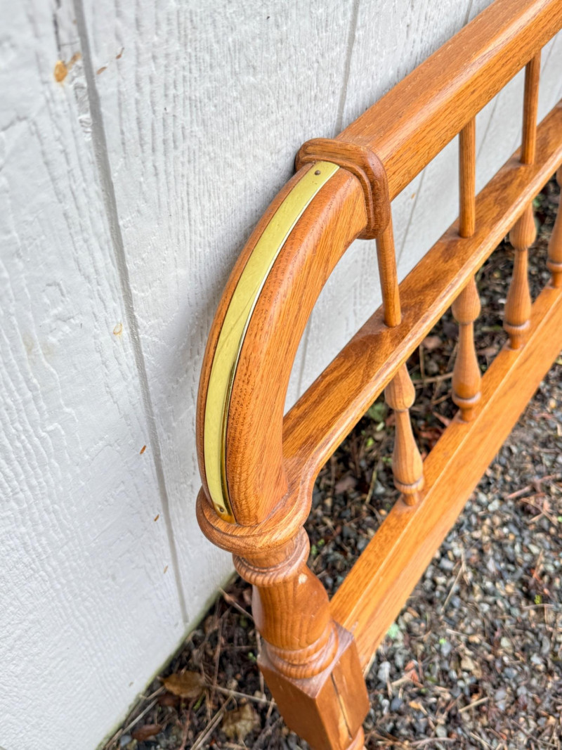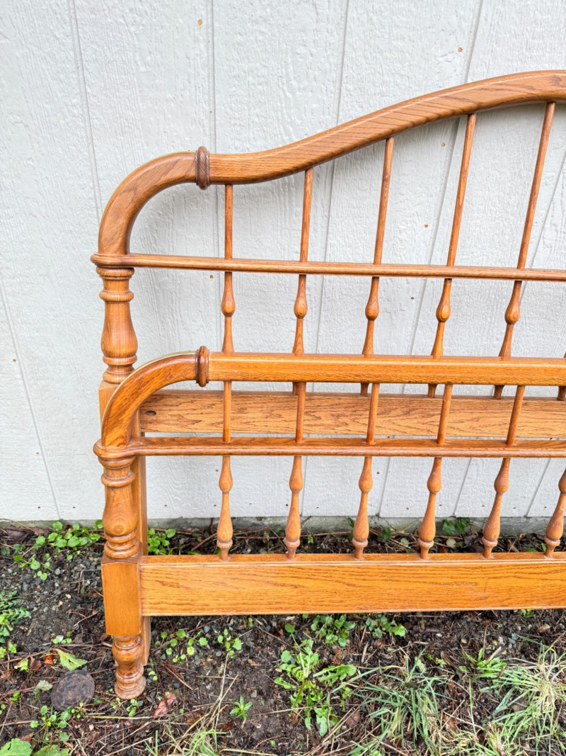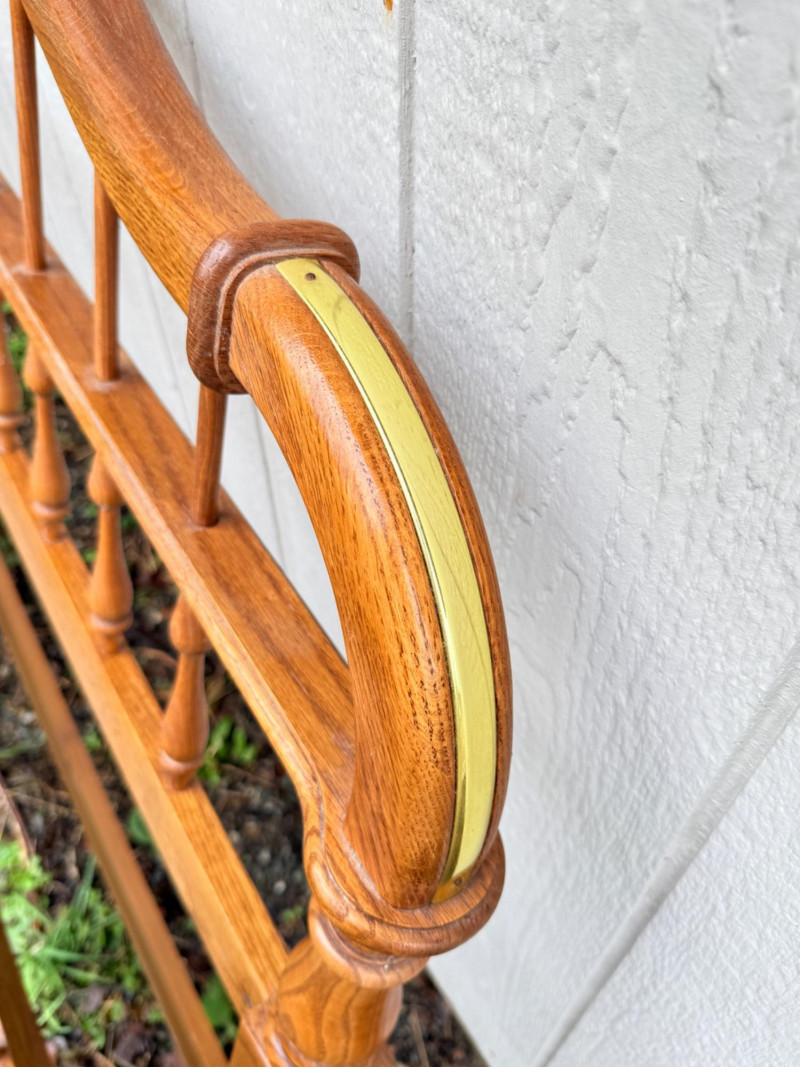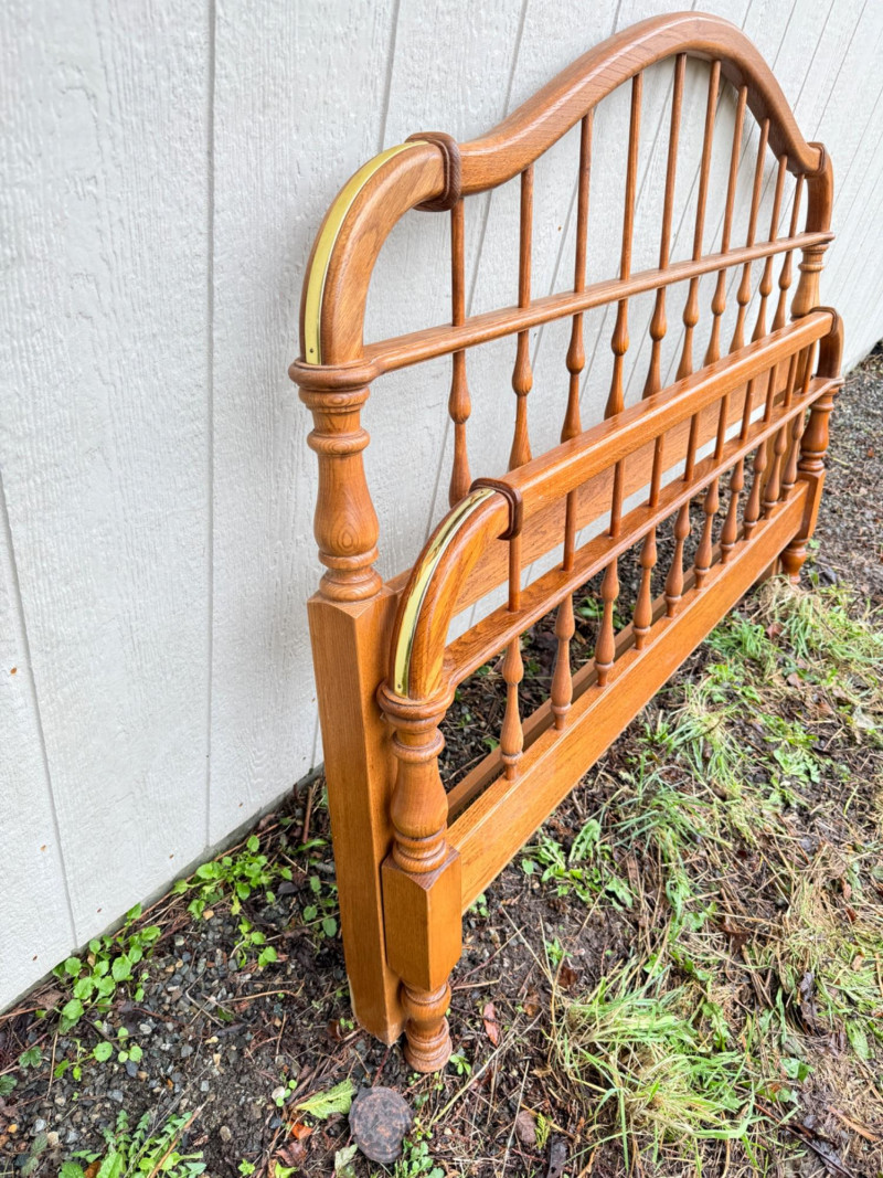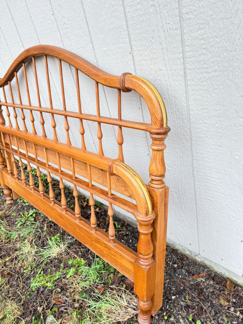 Vintage Ethan Allen Wooden Queen Bed Frame w/ Brass Accents