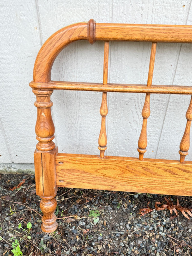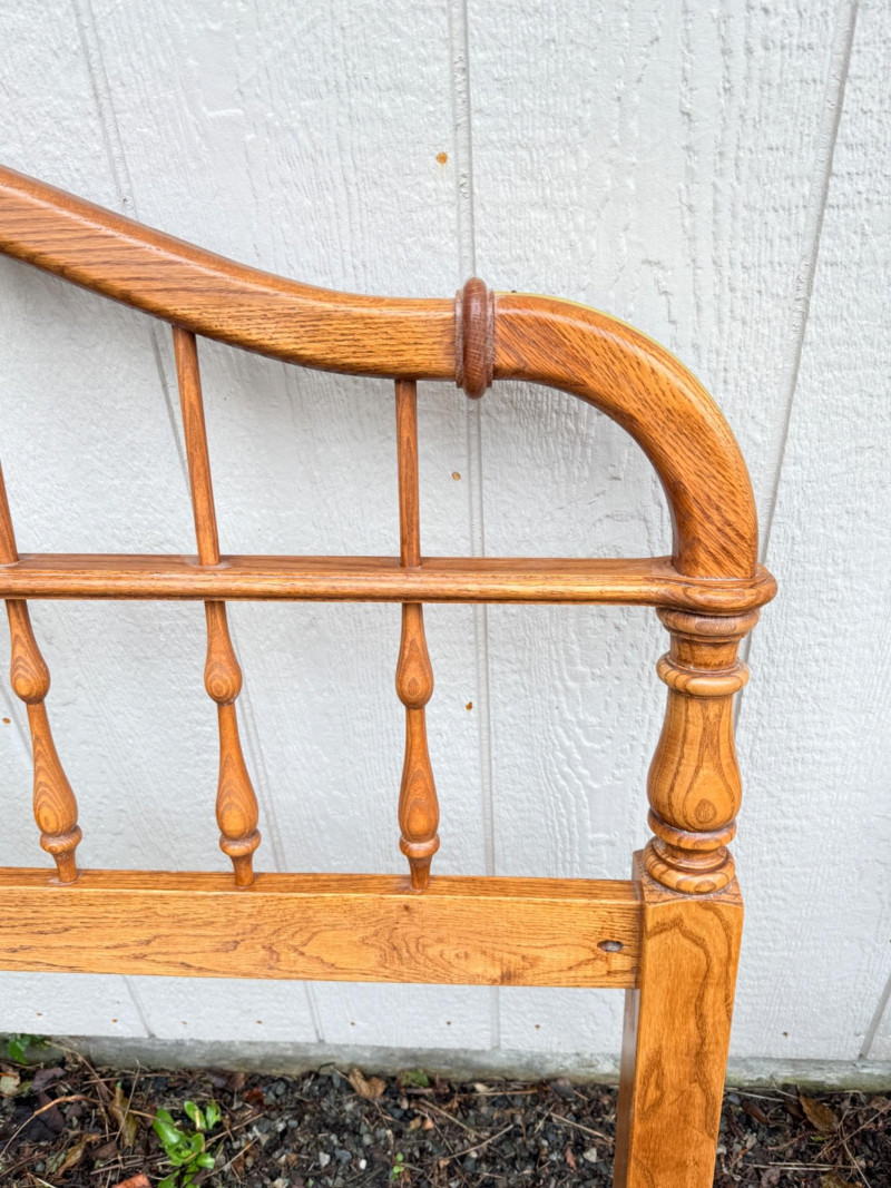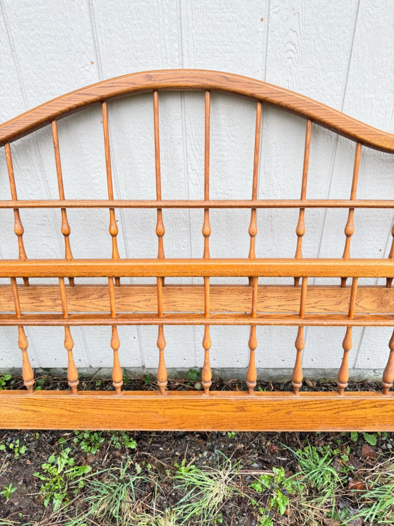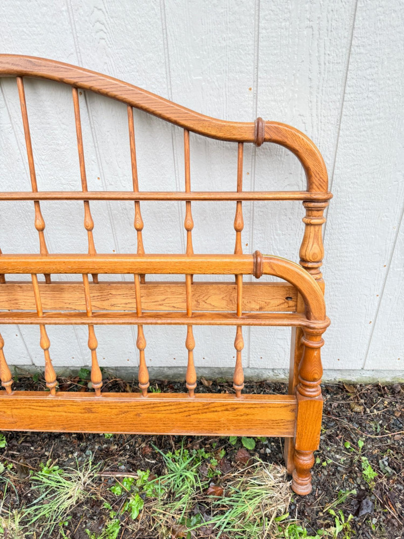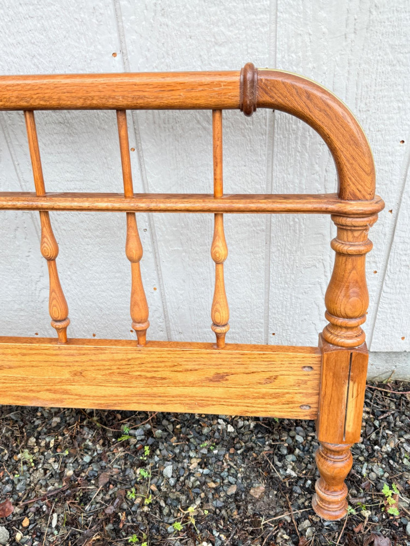 Vintage Ethan Allen Wooden Queen Bed Frame w/ Brass Accents