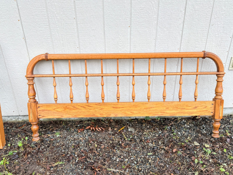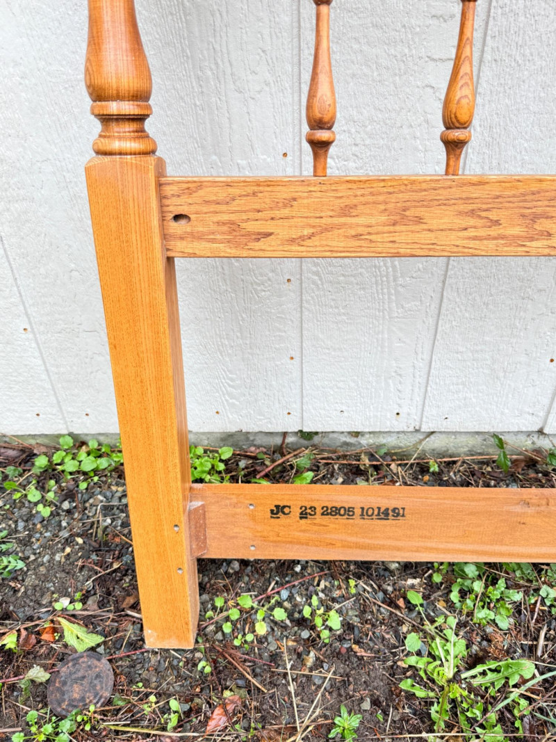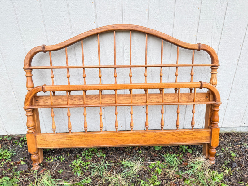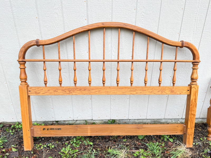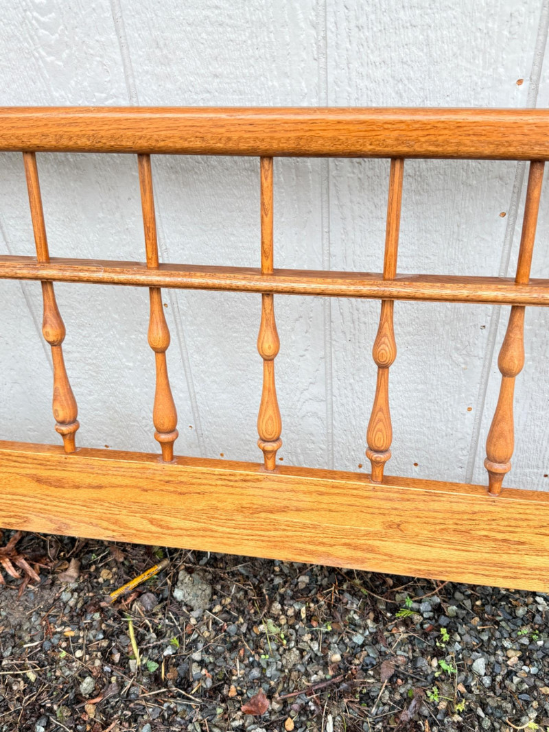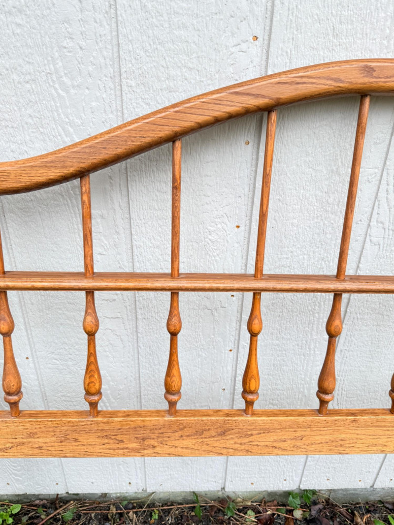 Vintage Ethan Allen Wooden Queen Bed Frame w/ Brass Accents