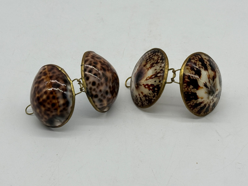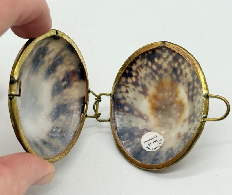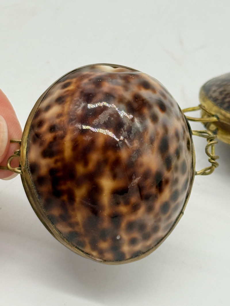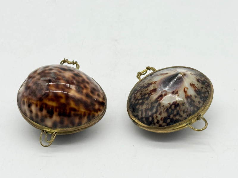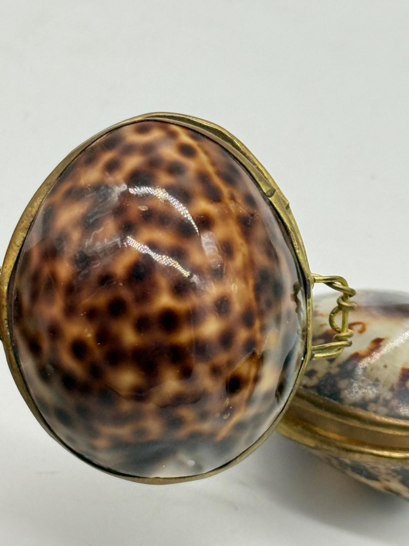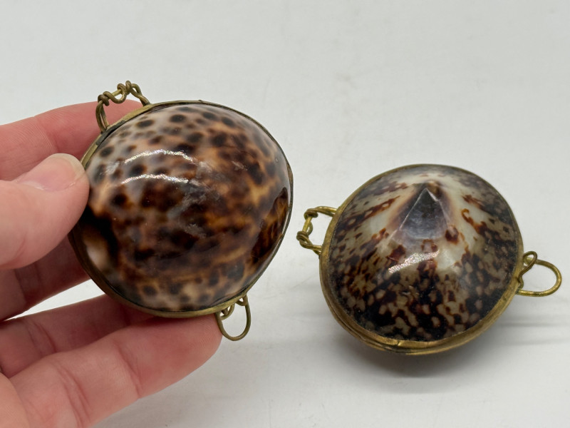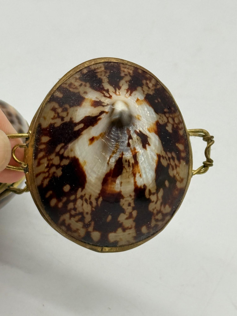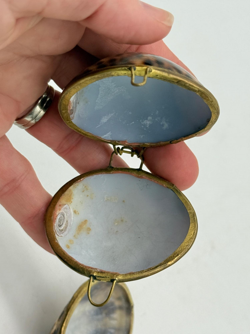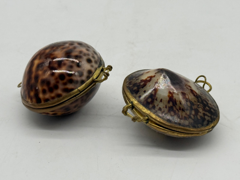 Lot # 54 - Vintage Clam Shell Trinkets w/ Hinged Brass Trim
