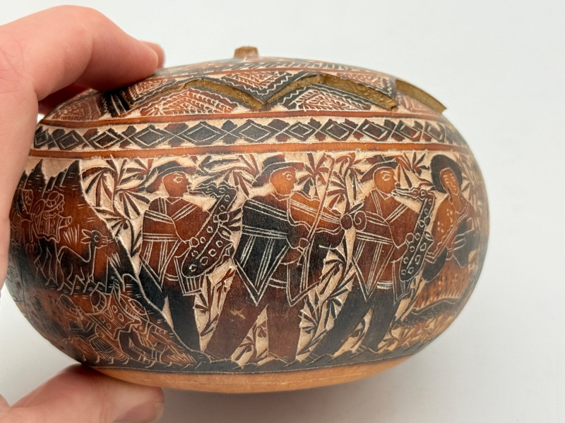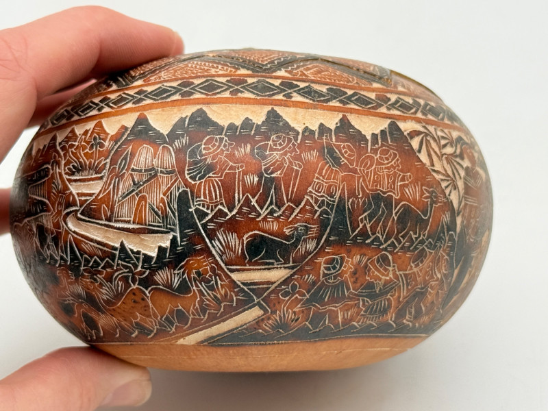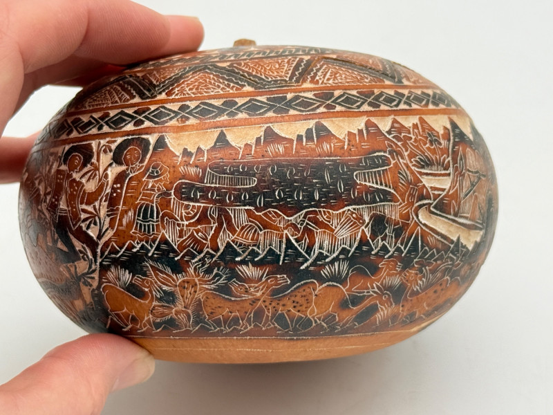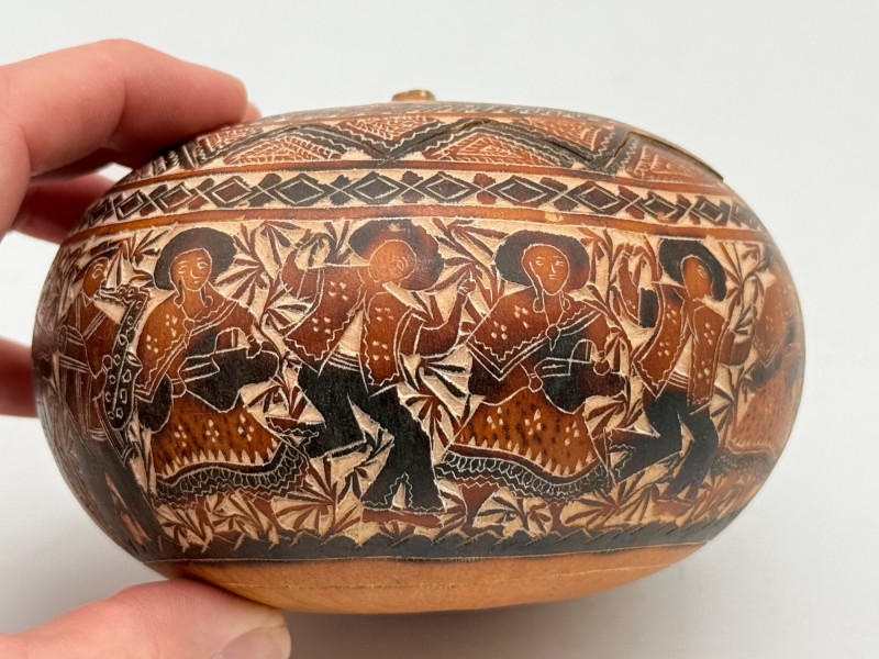 Lot # 8 - Hand-Carved Peruvian Gourd Box