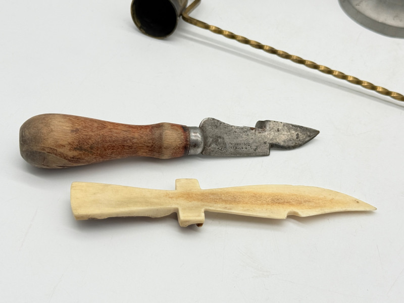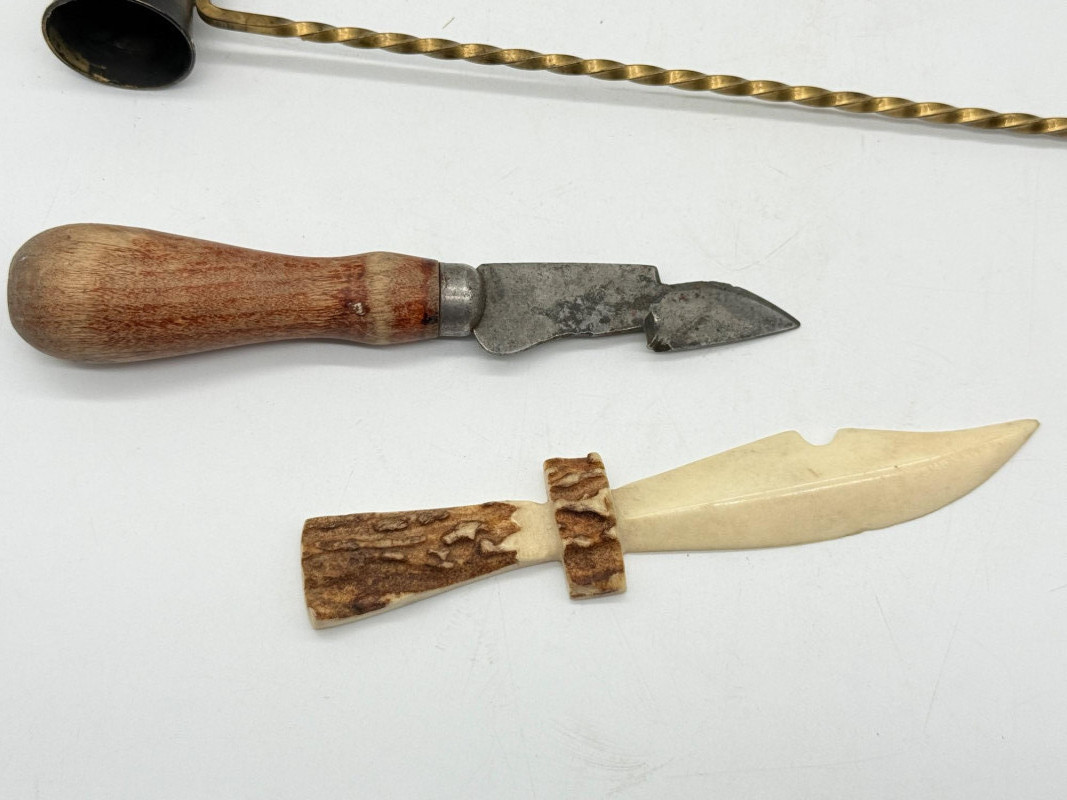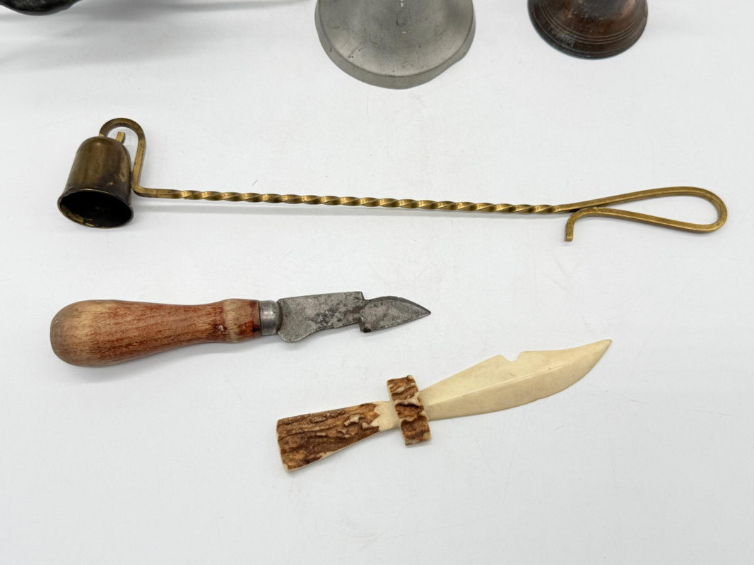 Mix Metals of Crab, Bells, Candle Snuffer, Can Opener & Antler Blade