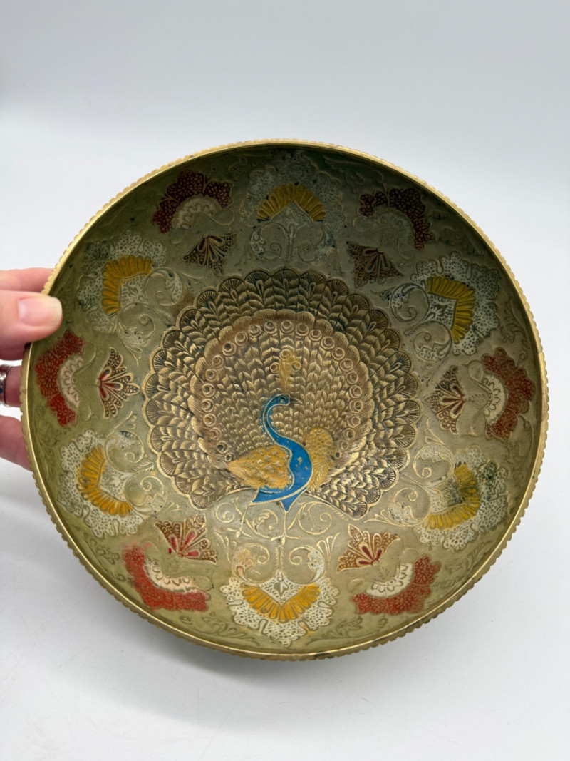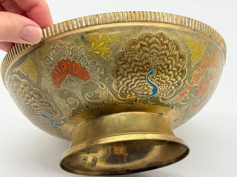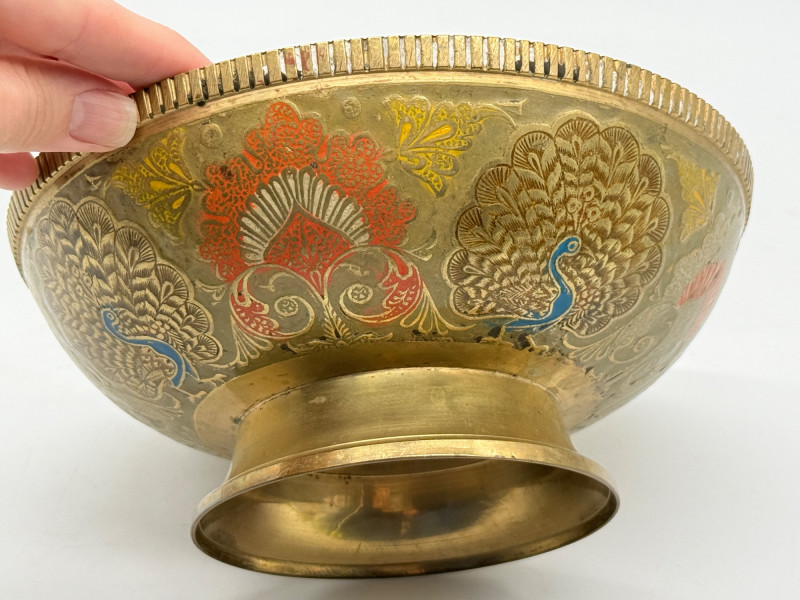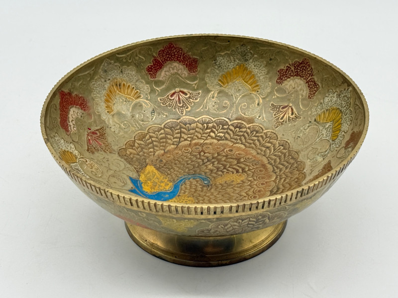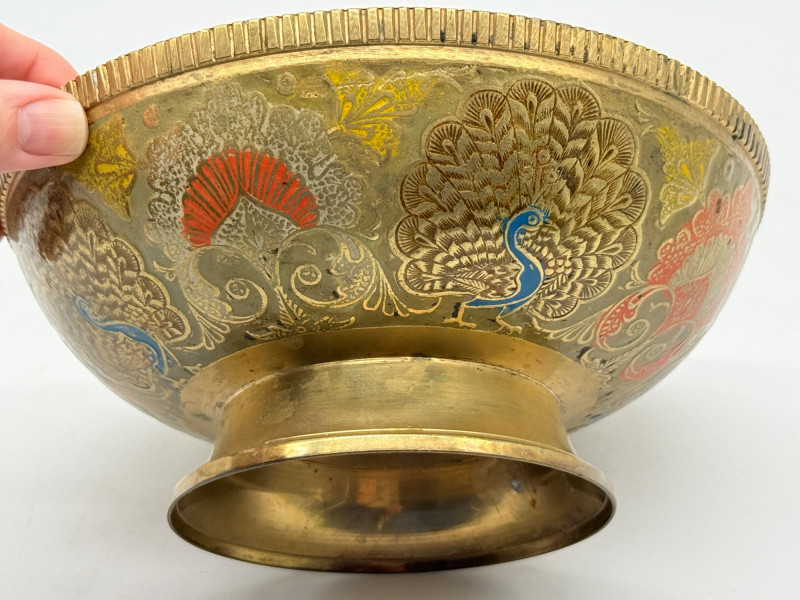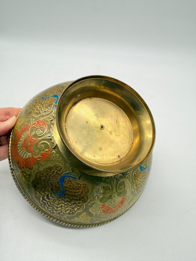 Indian Brass Cloisonne Bowl w/ Meenakari Art