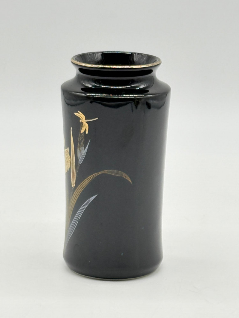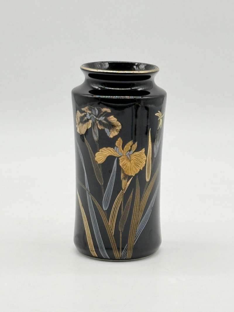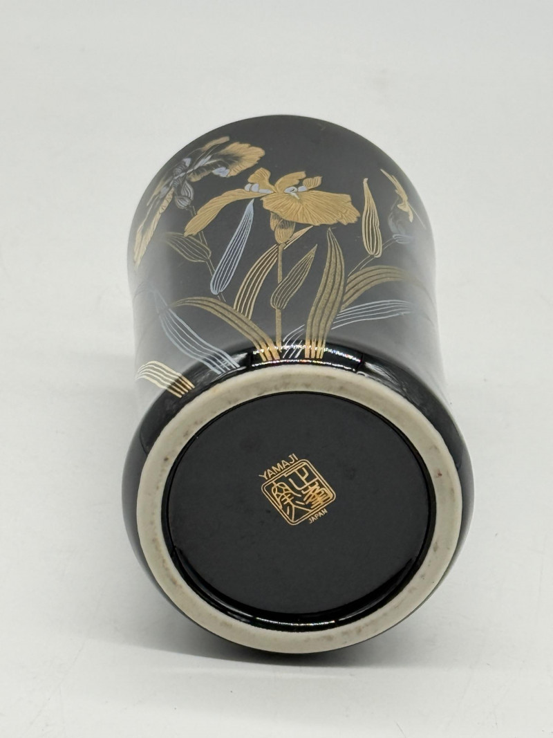 Lot # 78 - Vintage Yamaji Gilded Iris & Dragon Black Porcelain Vase