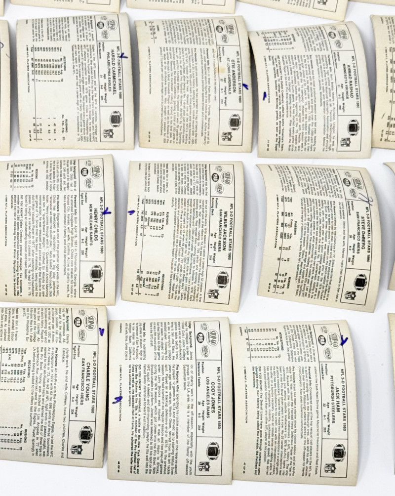1980 NFL 3D Player Cards - Near Complete Set of 48 (#21 Missing)