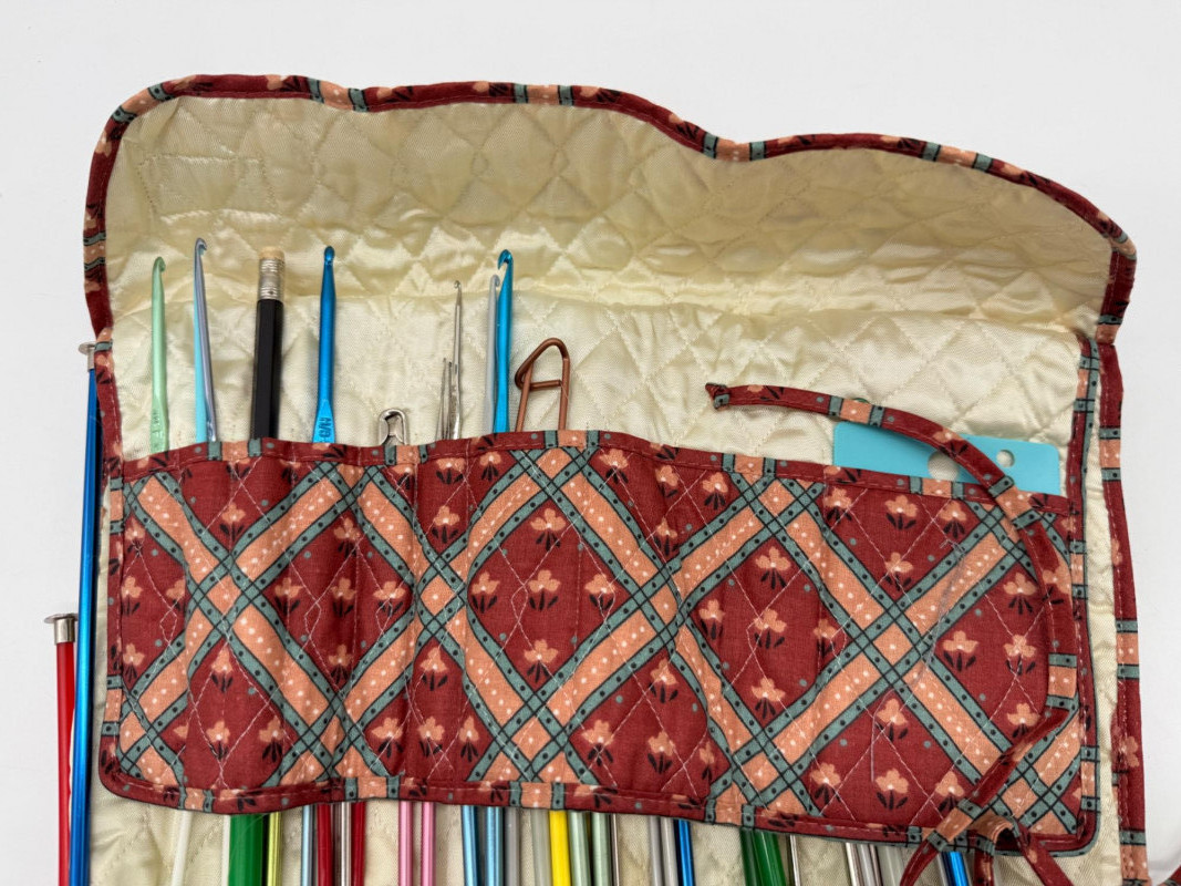 Lot # 59 - Ellen Originals Quilted Fabric Roll Up Storage w/ Crochet Hooks