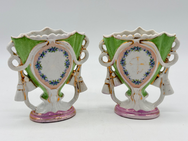 Lot # 166 - Antique Porcelain Fan Style Vases