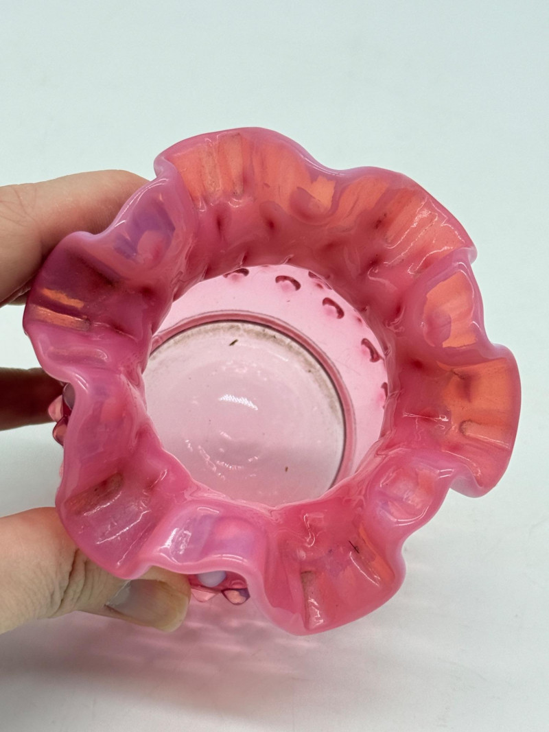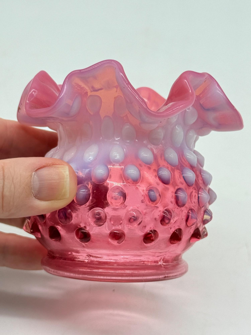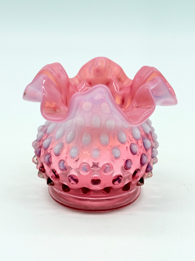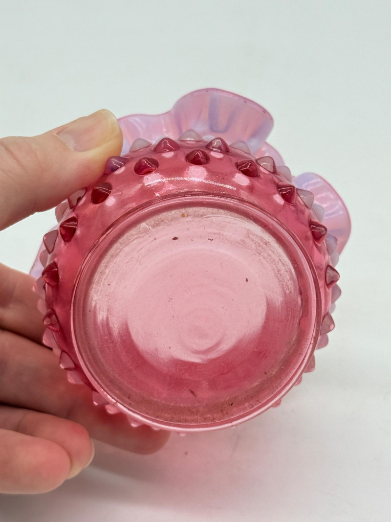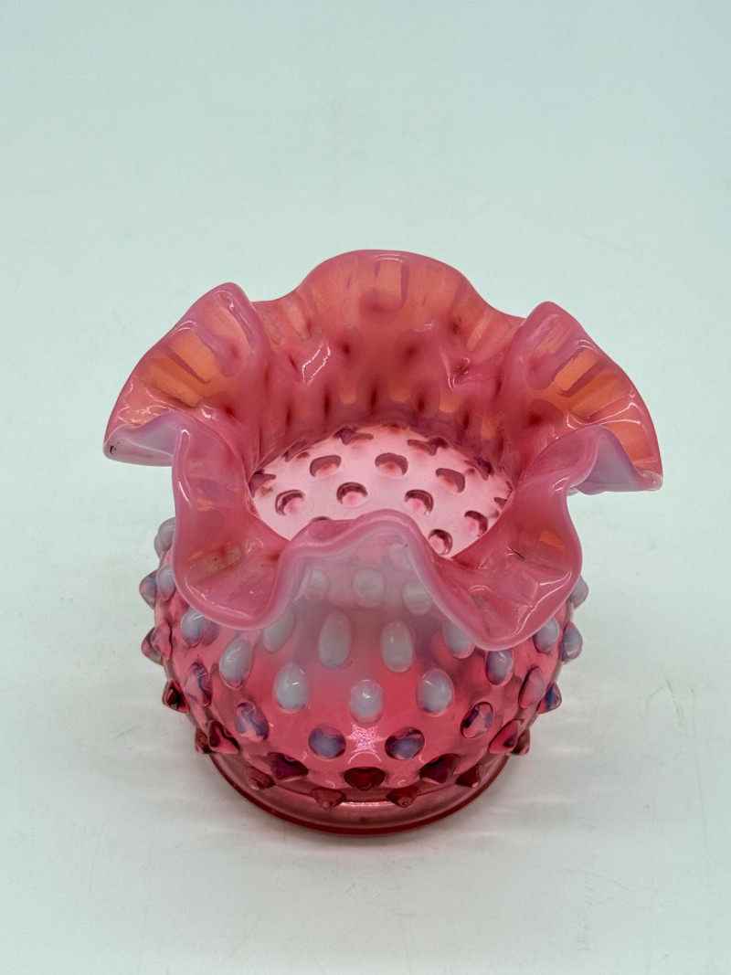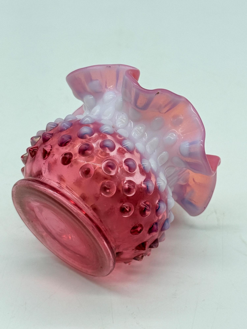 Fenton 3" Art Glass Cranberry Pick Opalescent Hobnail Vase