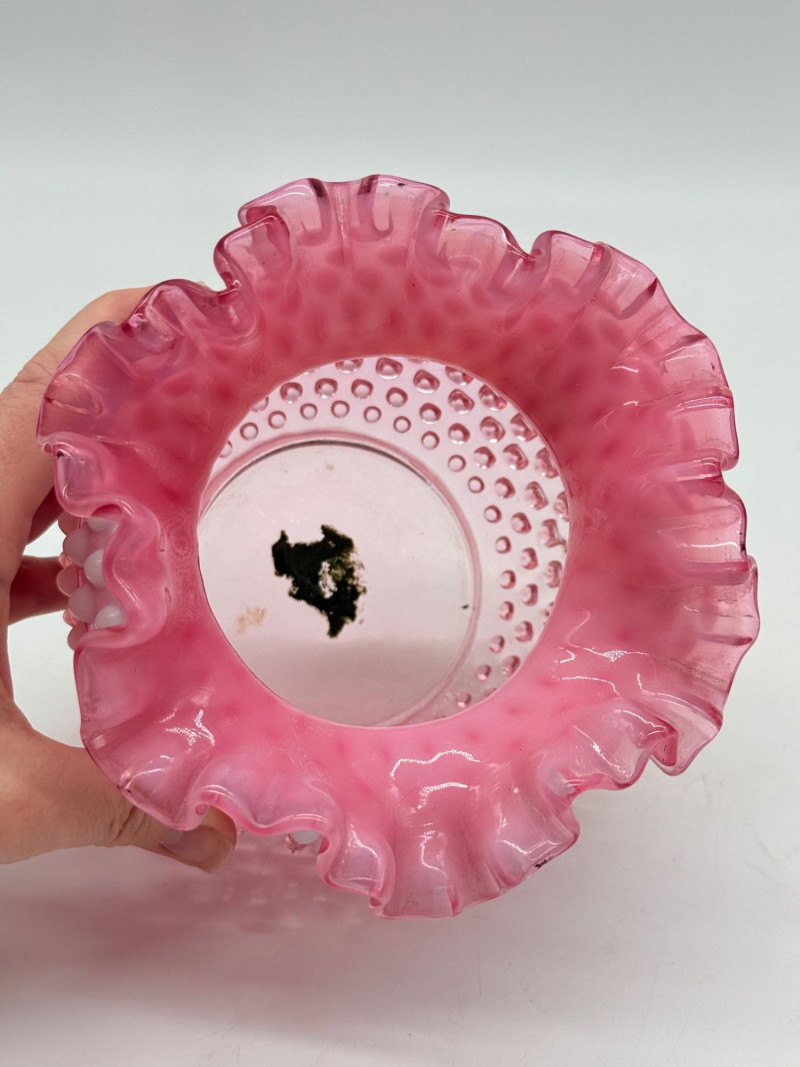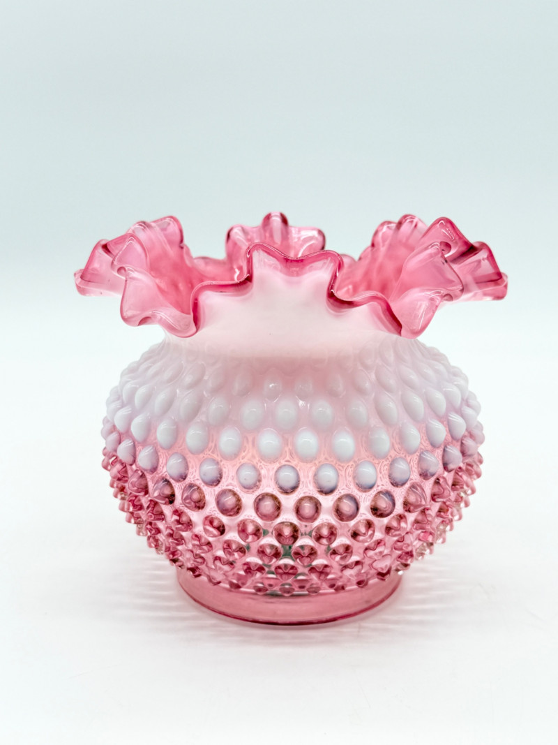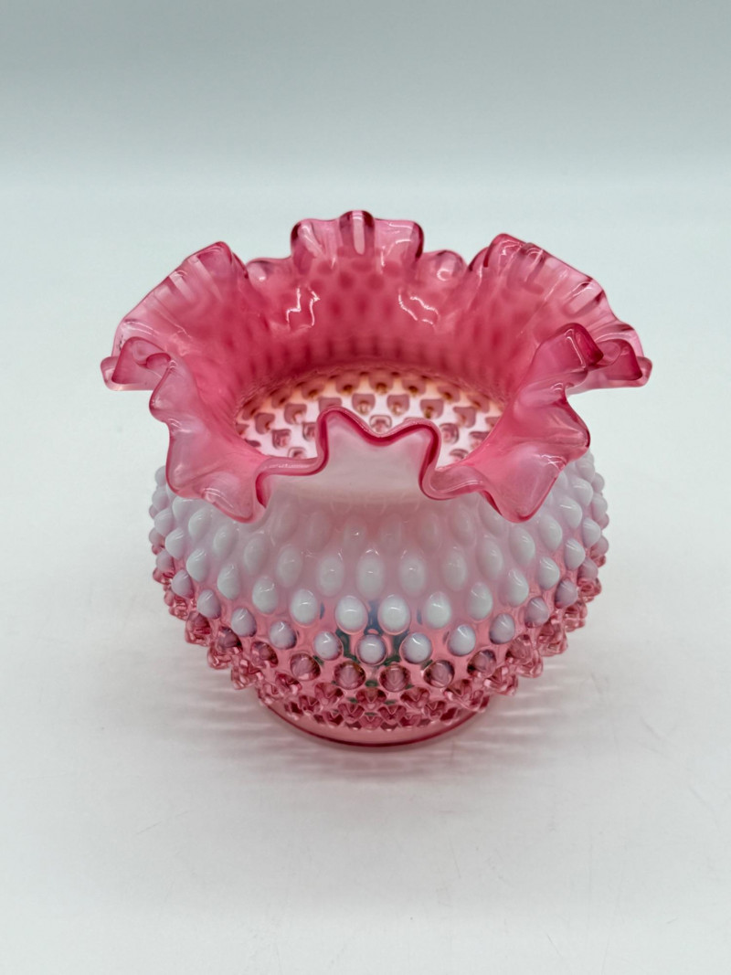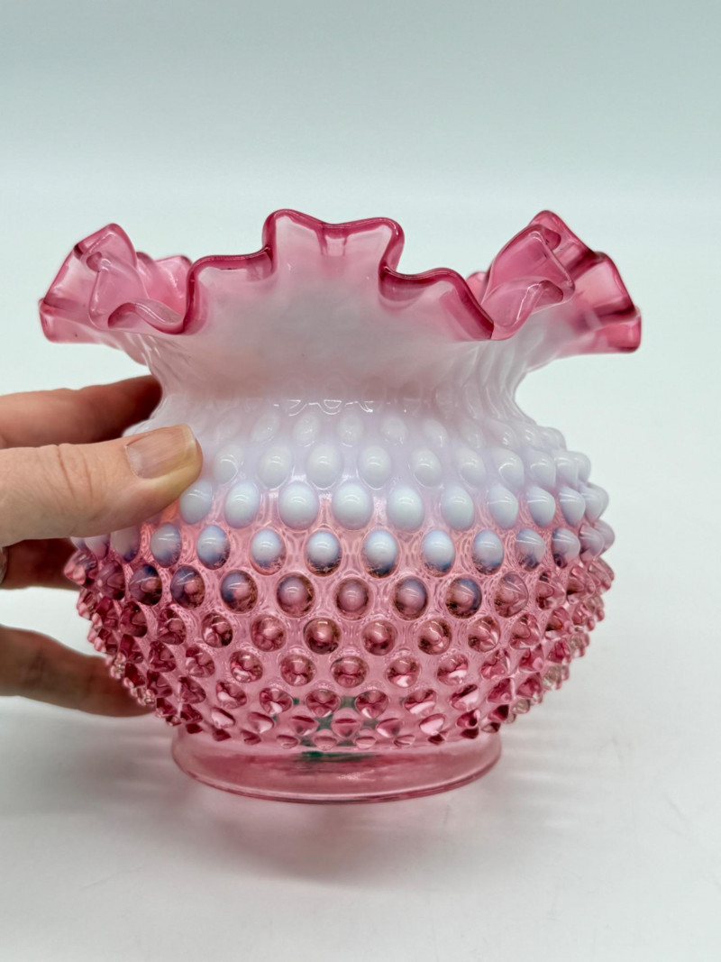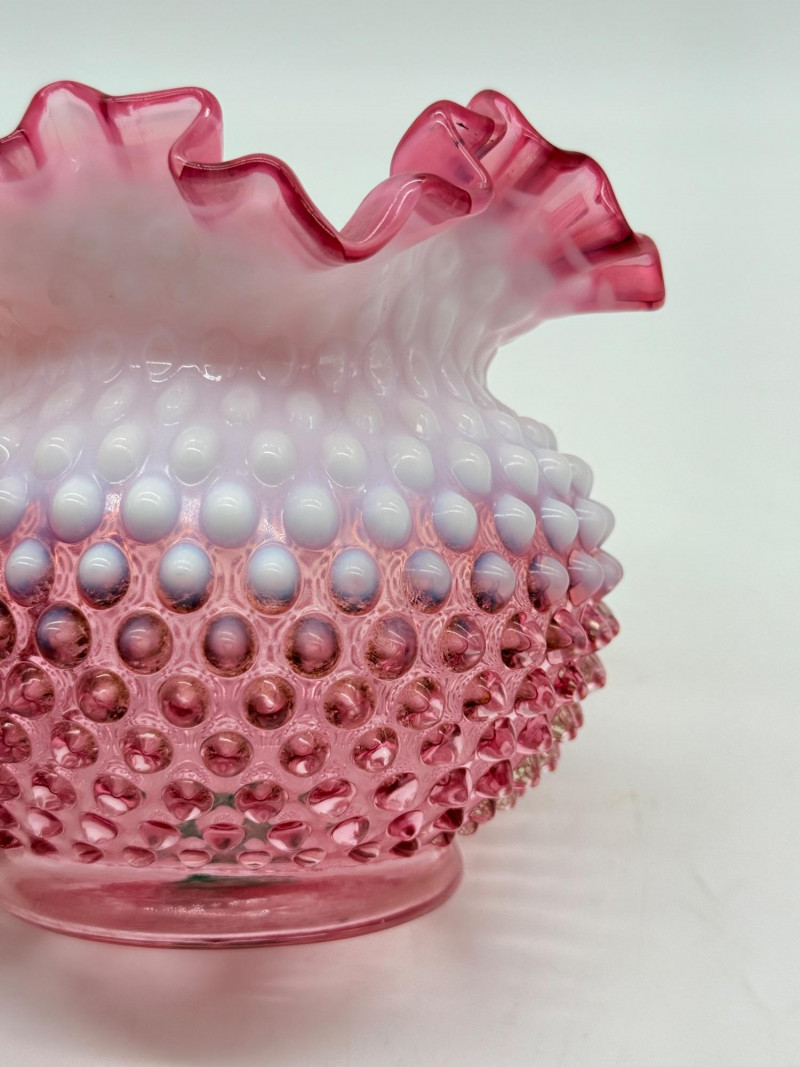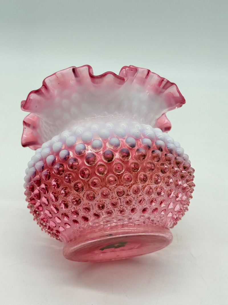 Lot # 4 - Fenton 5" Art Glass Cranberry Pick Opalescent Hobnail Vase