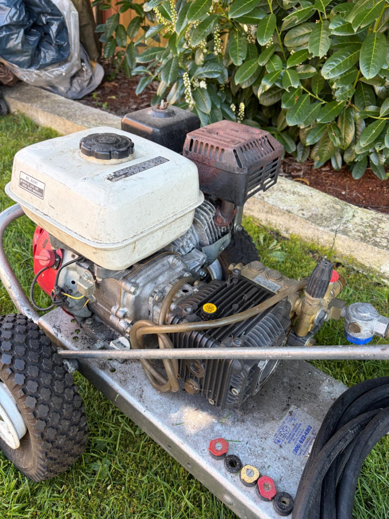 Bens Steam Cleaners Pressure Washer w/ GX200 6.5hp Honda Engine Bidding on this lot is an agreement that: (1) You will have 2 or 3 capable, able bodied persons to lift and load at a minimum. (2) You will bring a hand truck and/or any other tools needed to remove this item. If these steps are not followed your next item will be forfeit and no refund given.