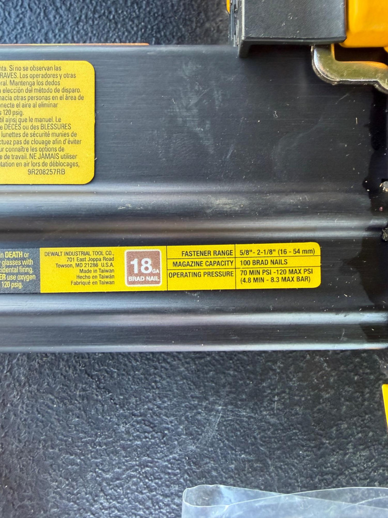 Lot # 52 - Dewalt 18-Gauge Pneumatic Brad Nailer