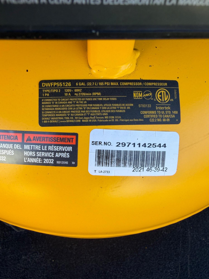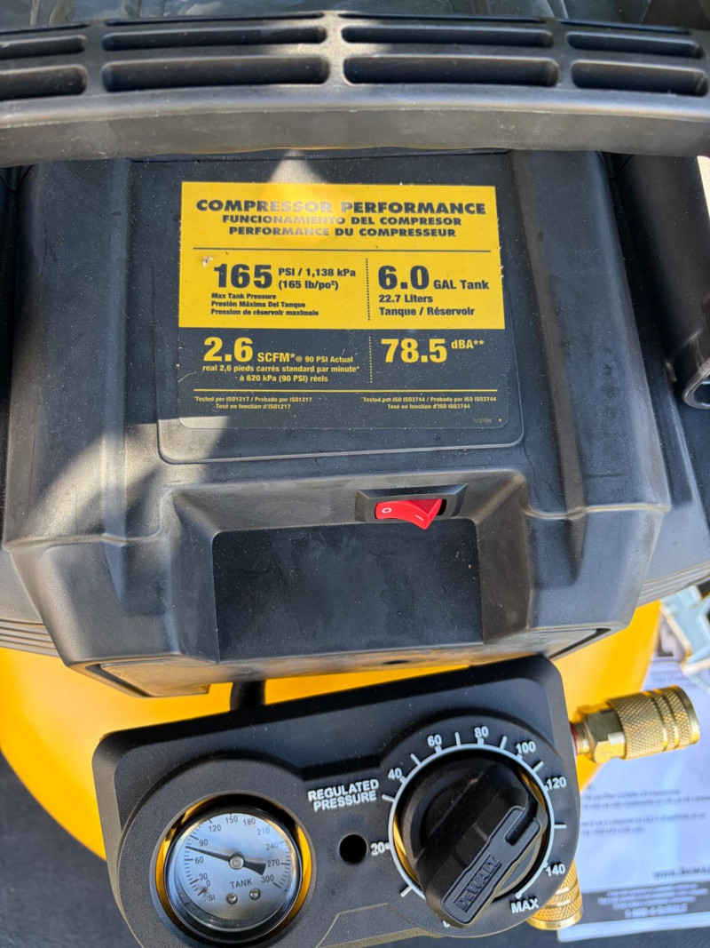 Lot # 20 - Dewalt 6-Gallon Heavy Duty 165 PSI Pancake Air Compressor