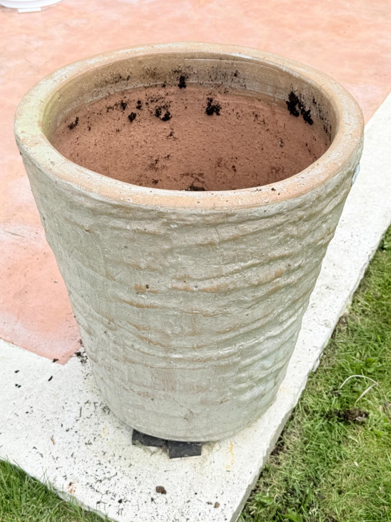 Heavy Tall Ceramic Pot Bidding on this lot is an agreement that: (1) You will have 2 or 3 capable, able bodied persons to lift and load at a minimum. (2) You will bring a hand truck and/or any other tools needed to remove this item. If these steps are not followed your next item will be forfeit and no refund given.