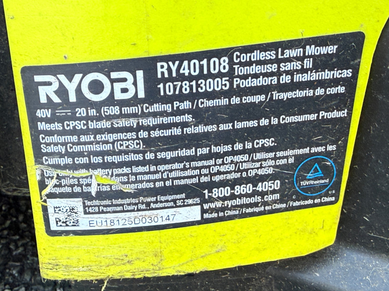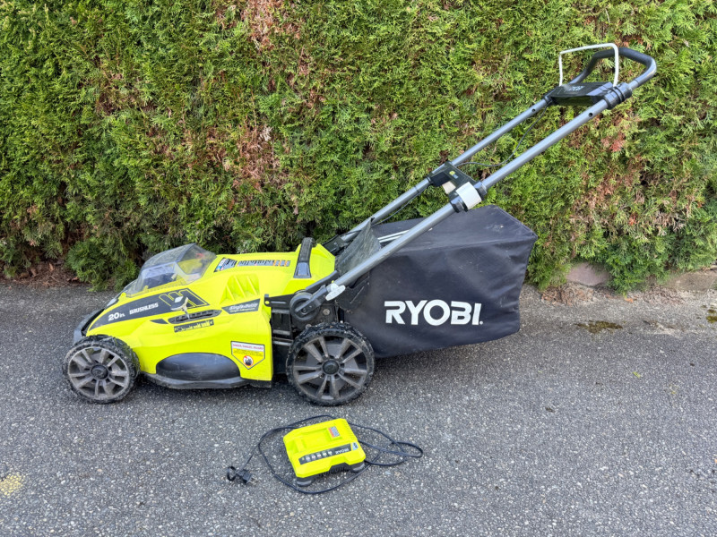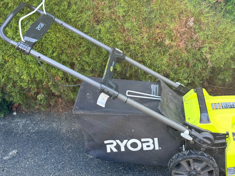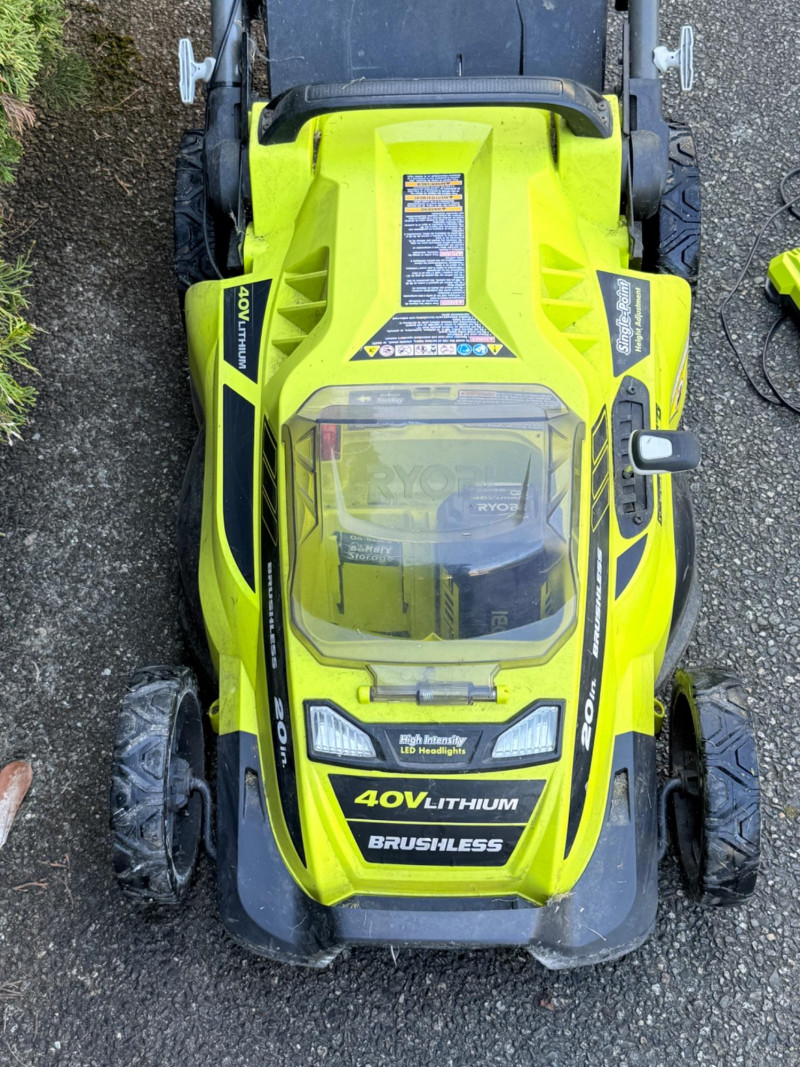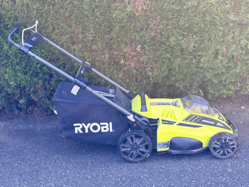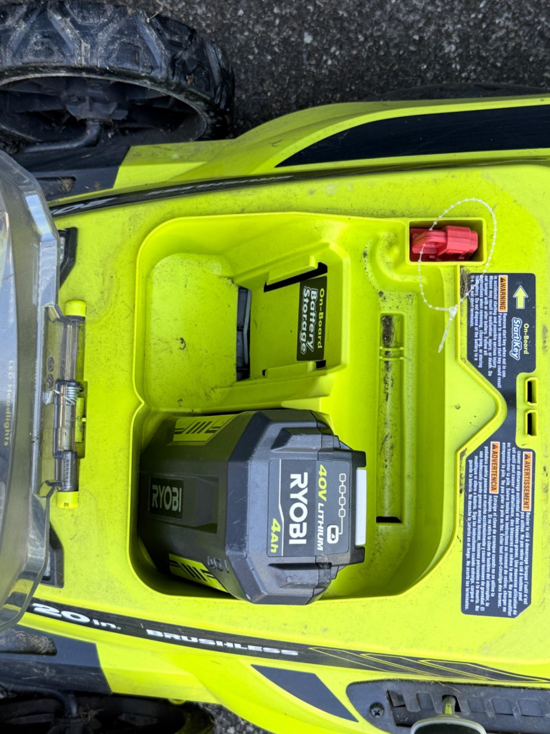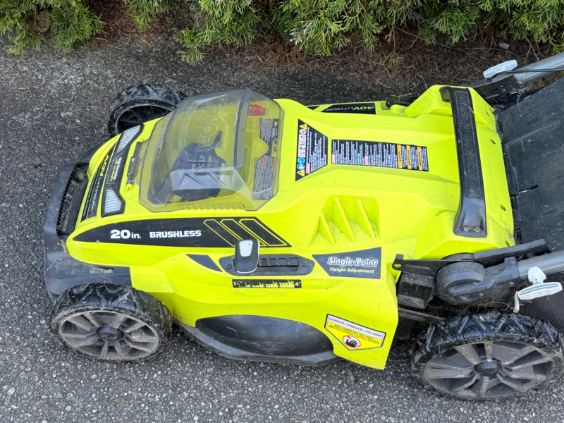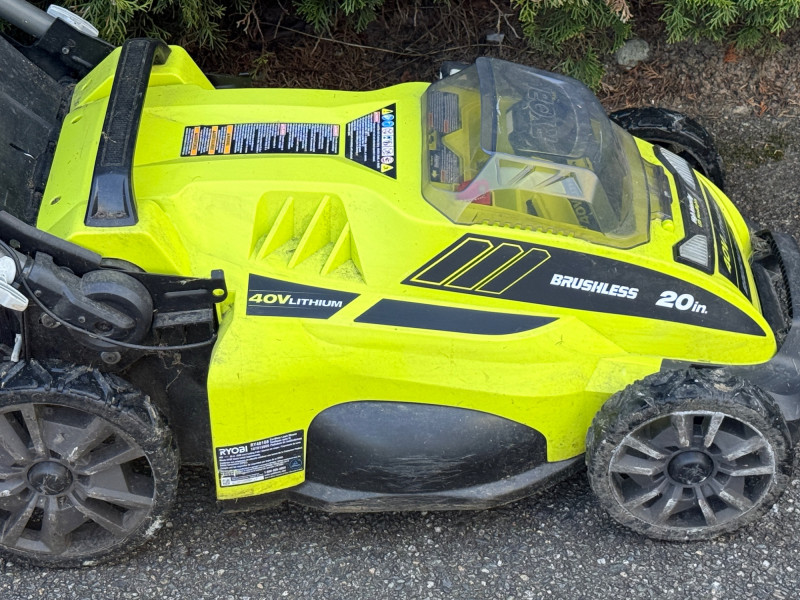 Ryobi 20 inch 40 Volt Brushless Lithium Cordless Battery Lawn Mower Bidding on this lot is an agreement that: (1) You will have 2 or 3 capable, able bodied persons to lift and load at a minimum. (2) You will bring a hand truck and/or any other tools needed to remove this item. If these steps are not followed your next item will be forfeit and no refund given.