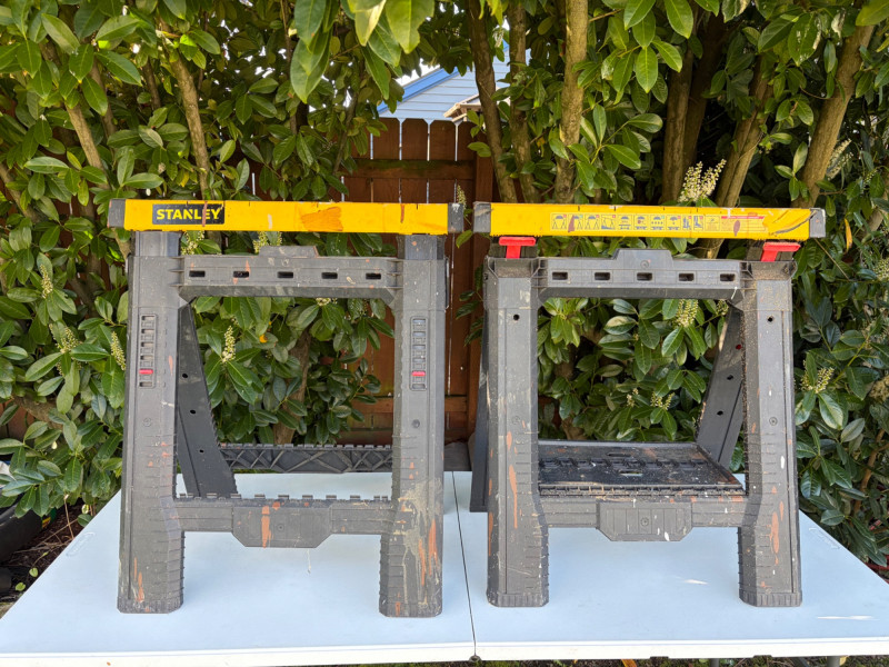 Lot # 116 - Stanley 32 inch Plastic Adjustable Folding Sawhorses