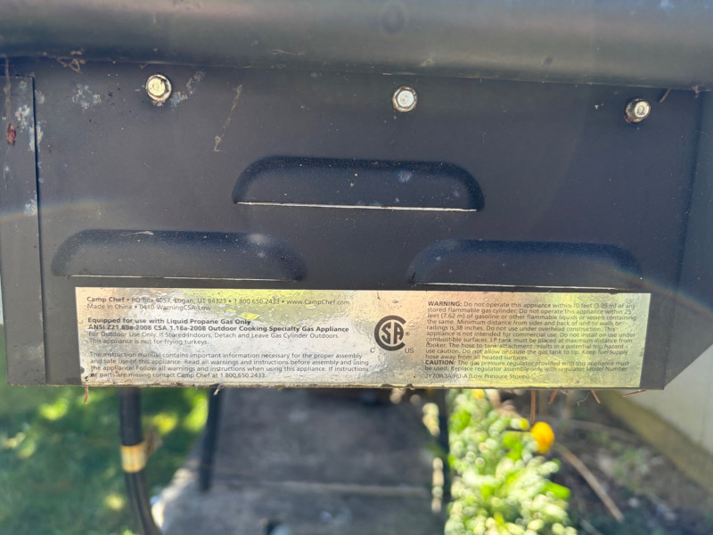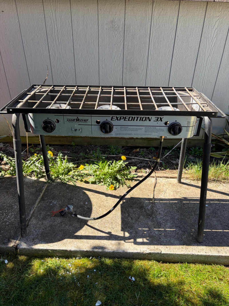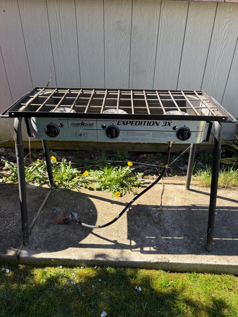 Camp Chef Expedition Portable Propane Stove Bidding on this lot is an agreement that: (1) You will have 2 or 3 capable, able bodied persons to lift and load at a minimum. (2) You will bring a hand truck and/or any other tools needed to remove this item. If these steps are not followed your next item will be forfeit and no refund given.