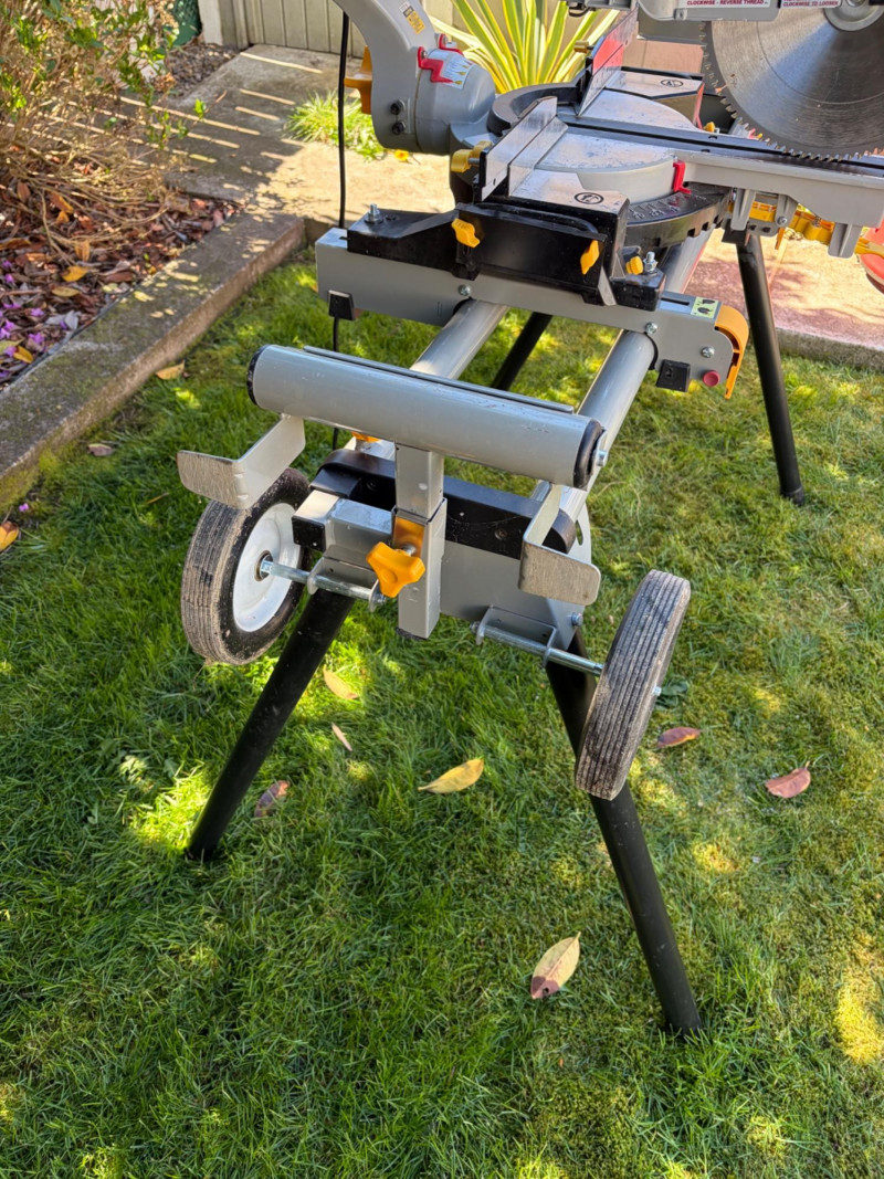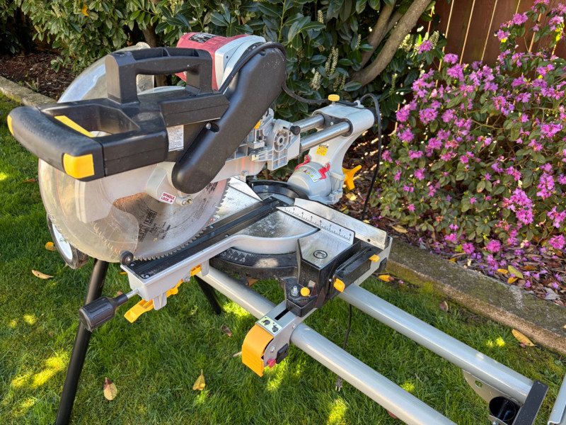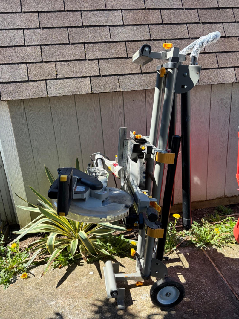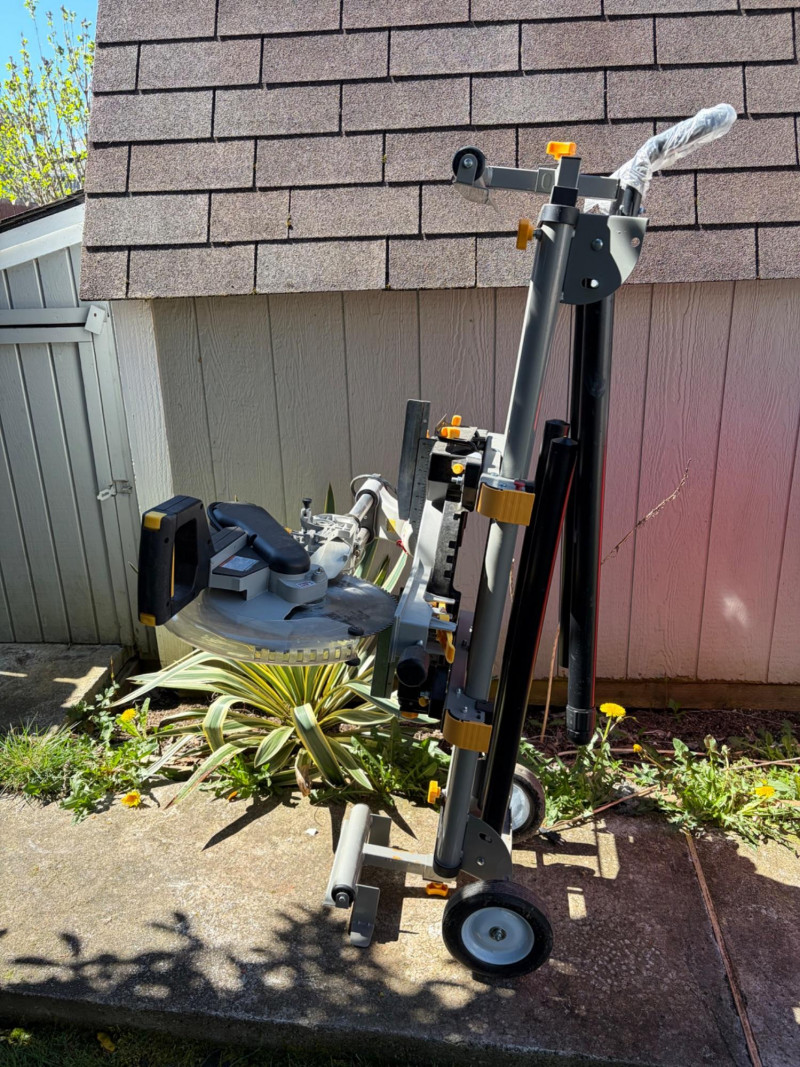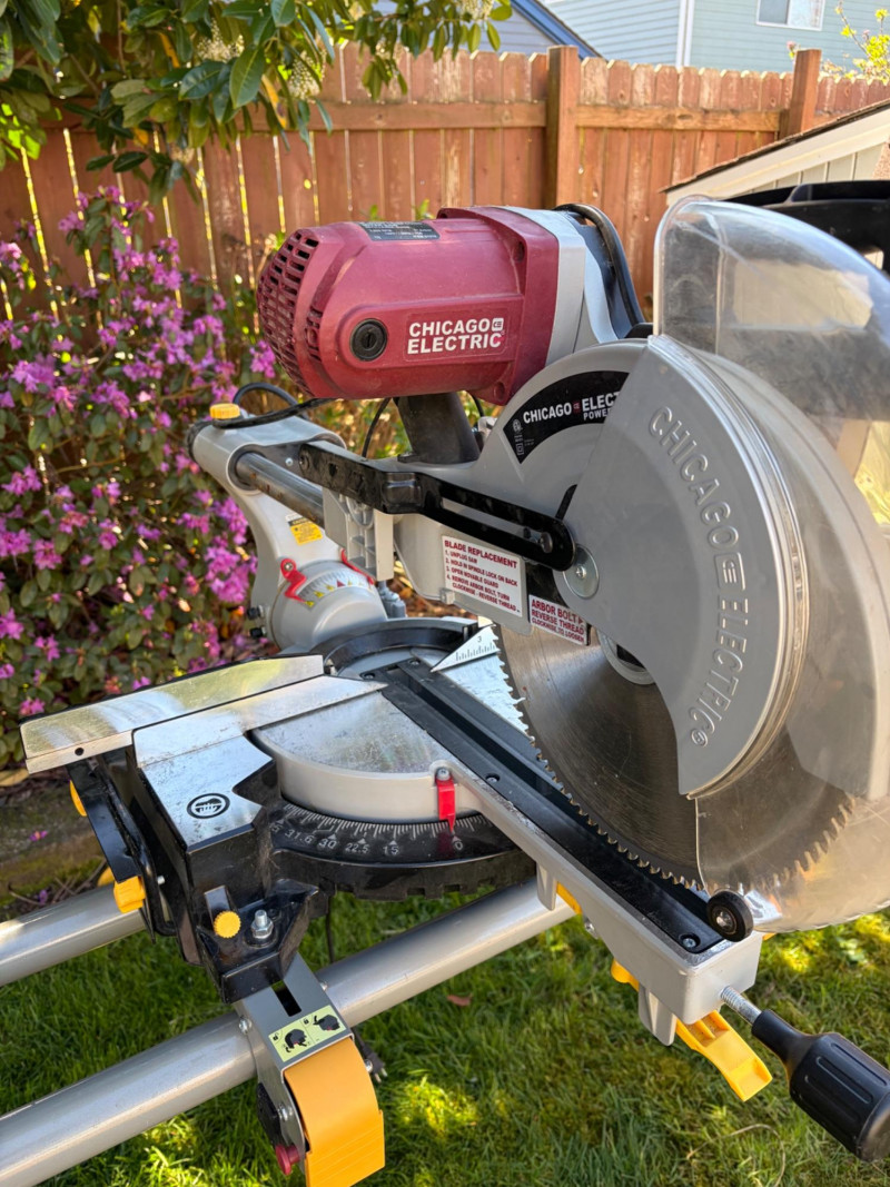 Chicago Electric 12" Sliding Compound Miter Saw on Rolling Stand Bidding on this lot is an agreement that: (1) You will have 2 or 3 capable, able bodied persons to lift and load at a minimum. (2) You will bring a hand truck and/or any other tools needed to remove this item. If these steps are not followed your next item will be forfeit and no refund given.