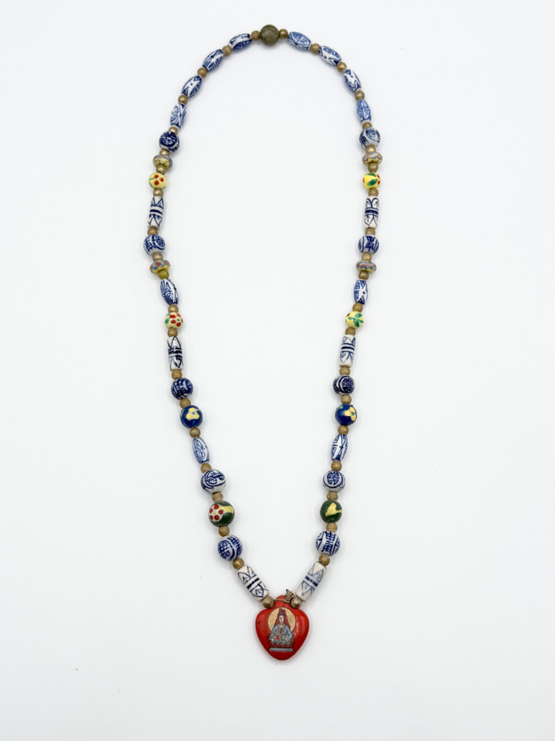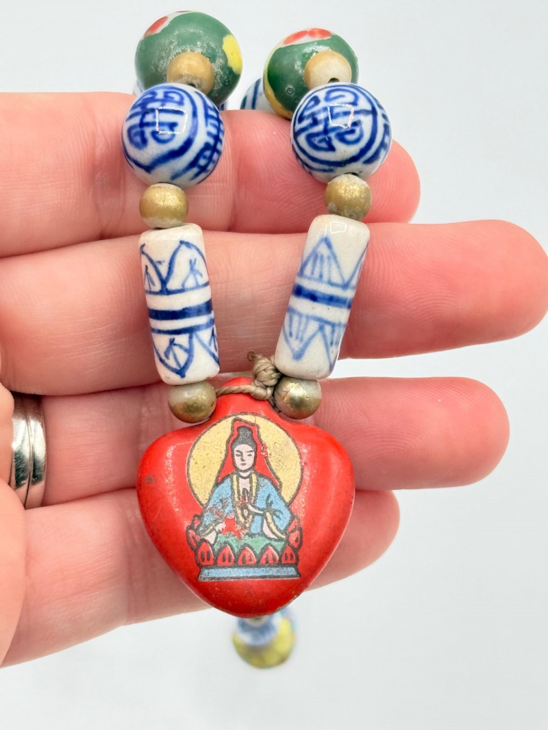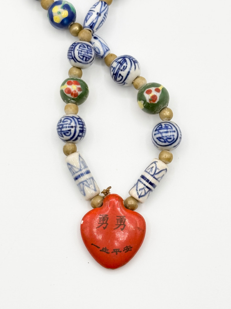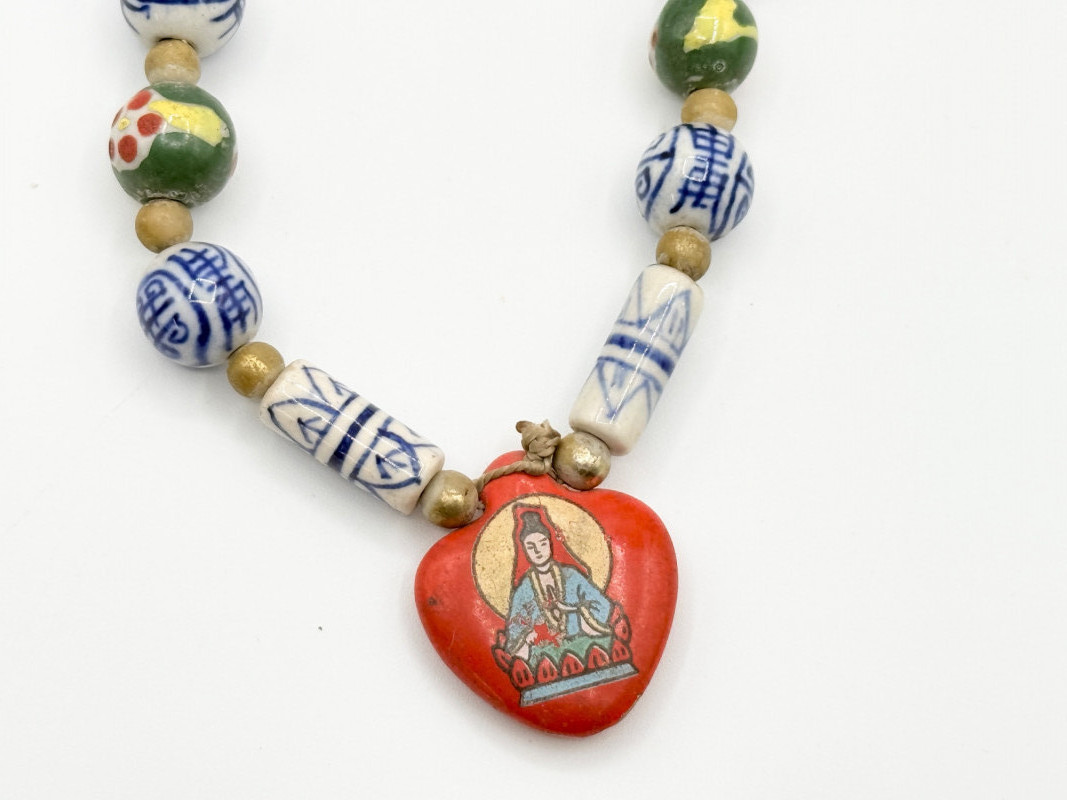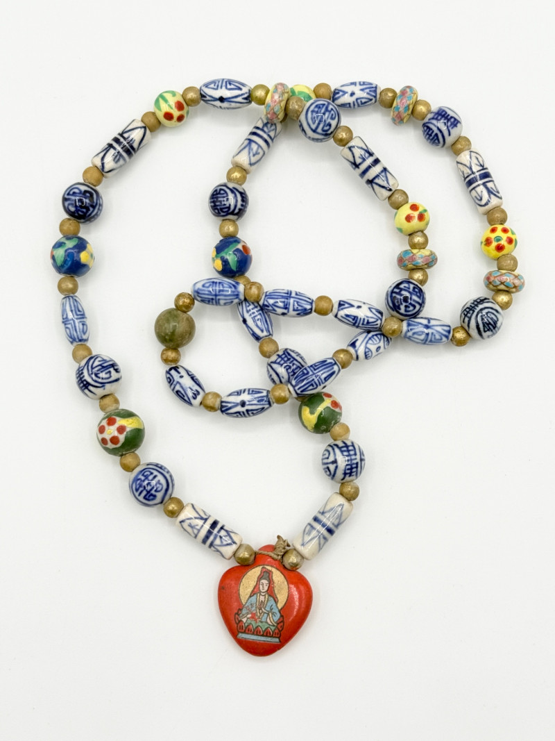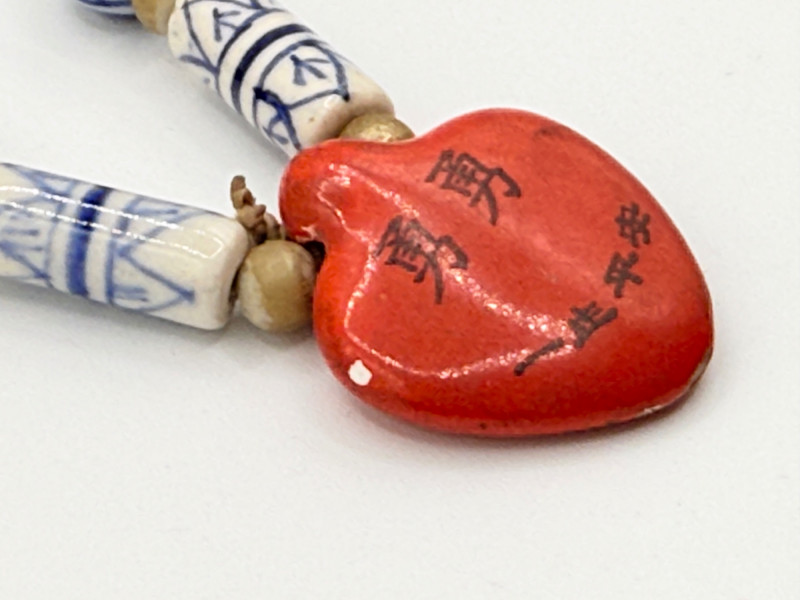 Lot # 51 - Chinese Porcelain Beaded Lariat Necklace w/ Heart-Shaped Pendant