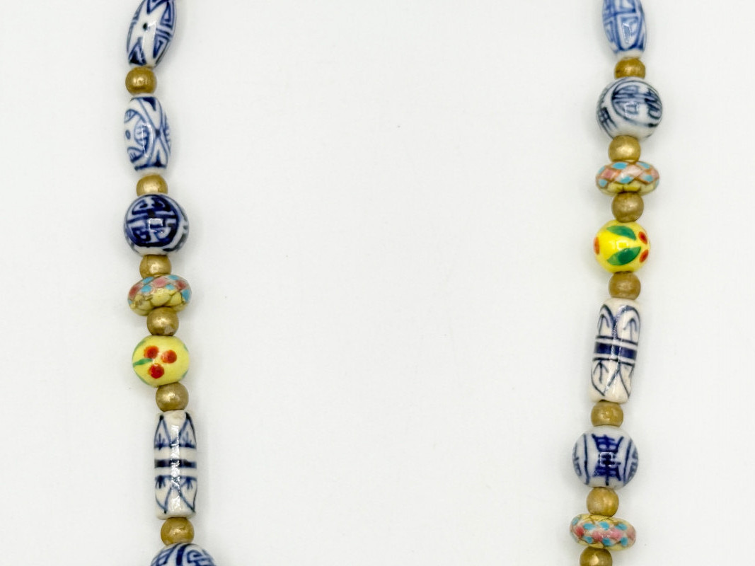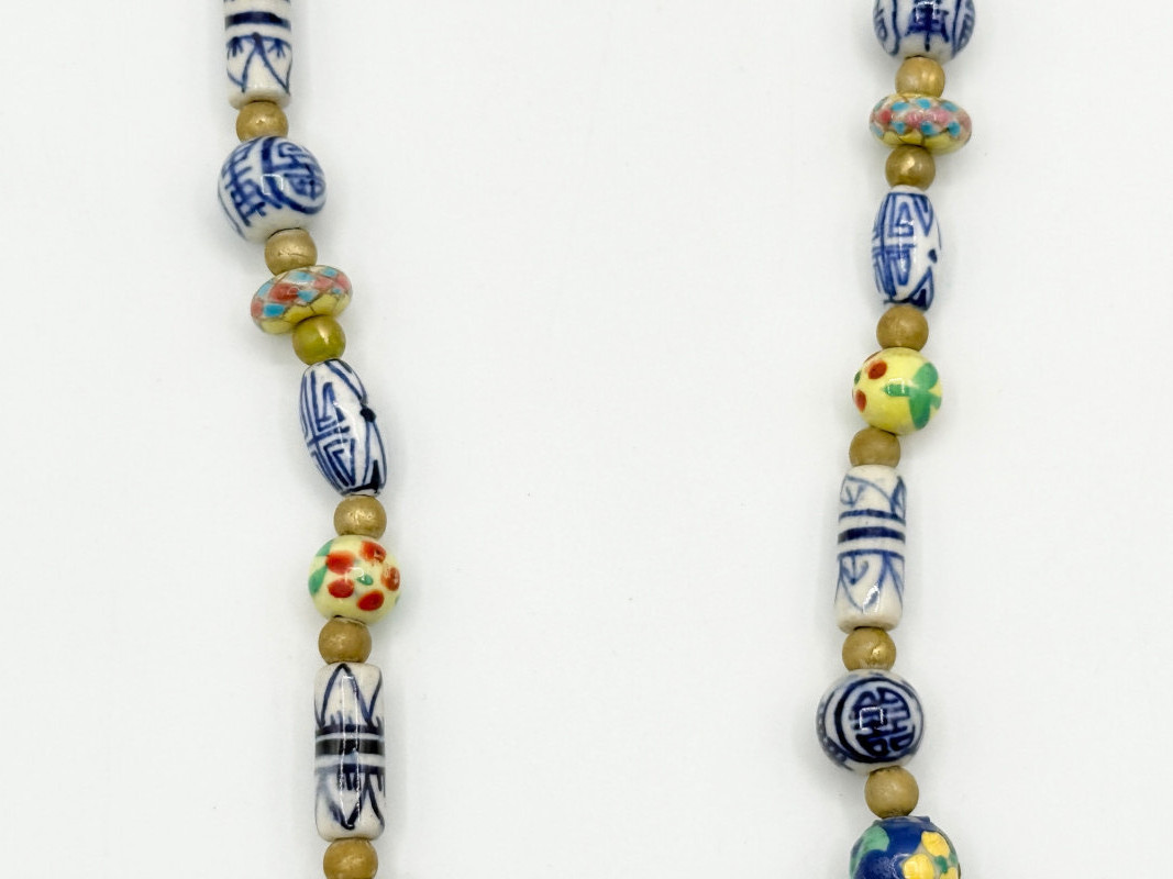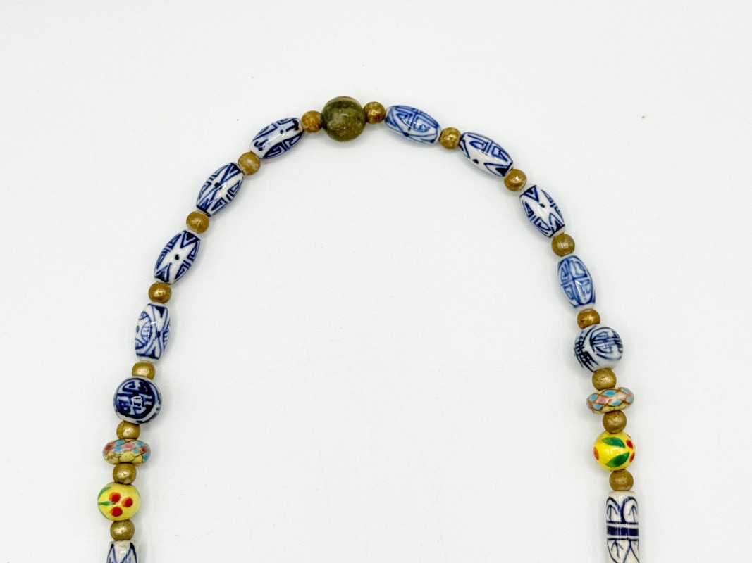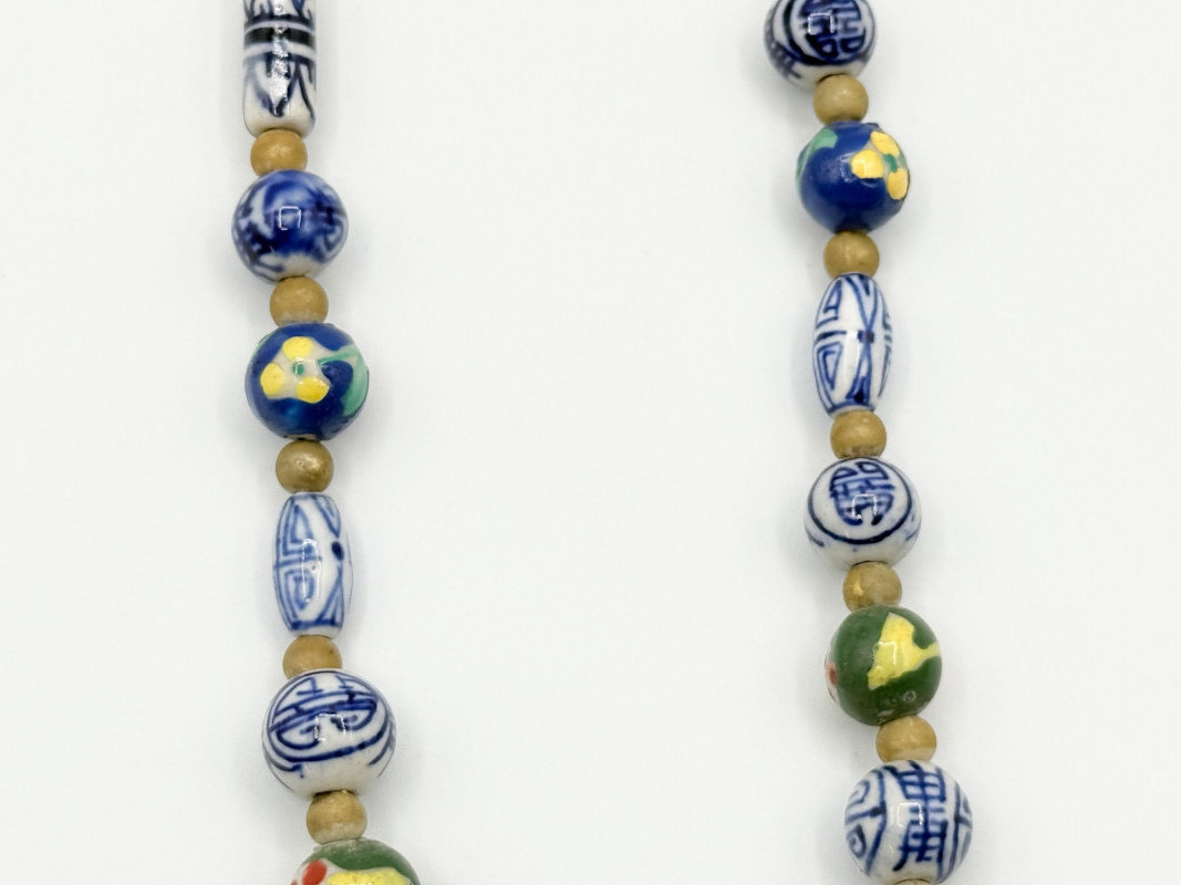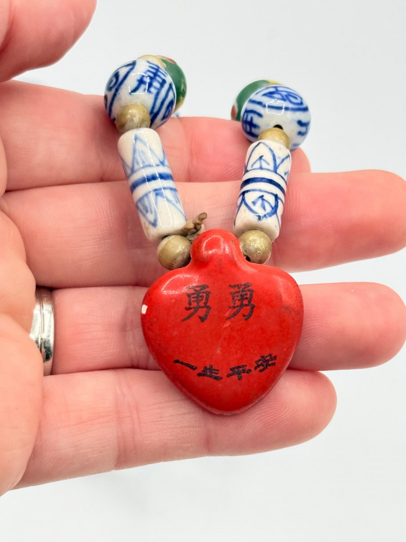 Lot # 51 - Chinese Porcelain Beaded Lariat Necklace w/ Heart-Shaped Pendant