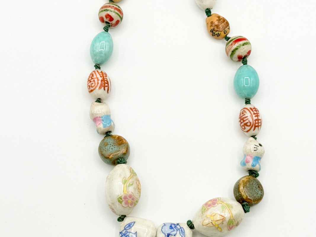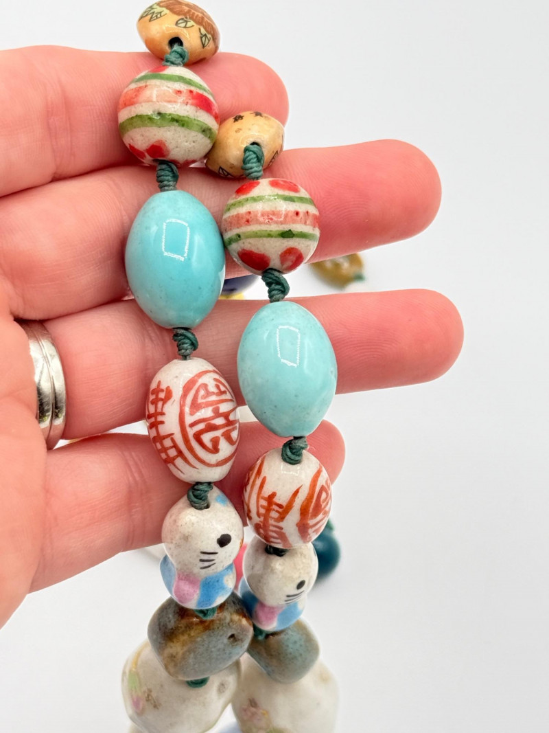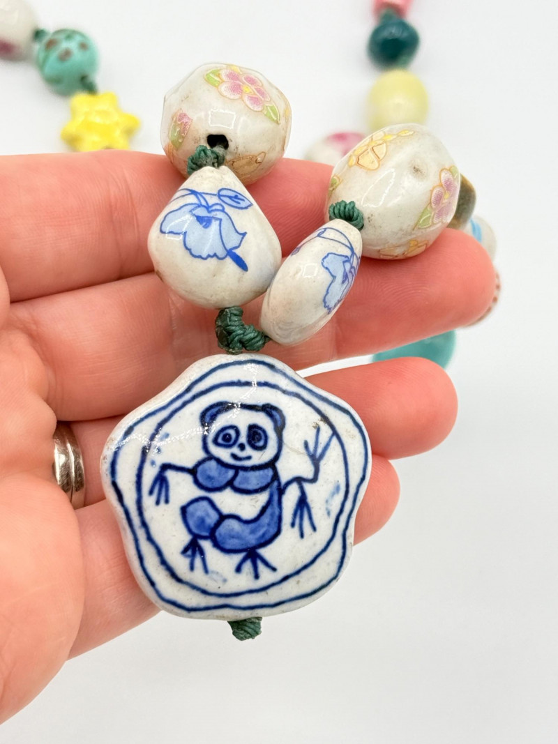 Lot # 25 - Chinese Porcelain Beaded Lariat Necklace w/ Panda Pendant