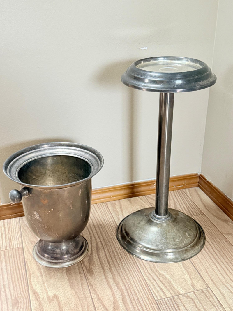 Pottery Barn 2-Piece Silver Platted Champagne Bucket & Stand