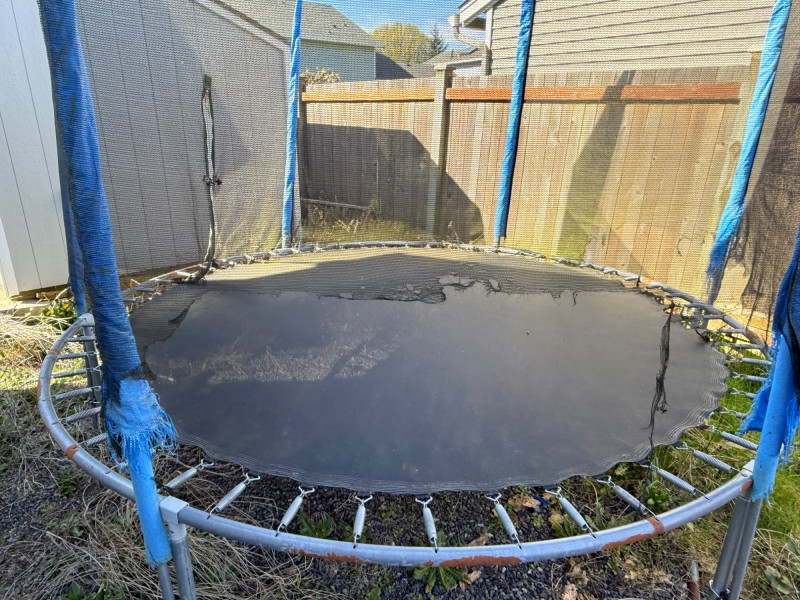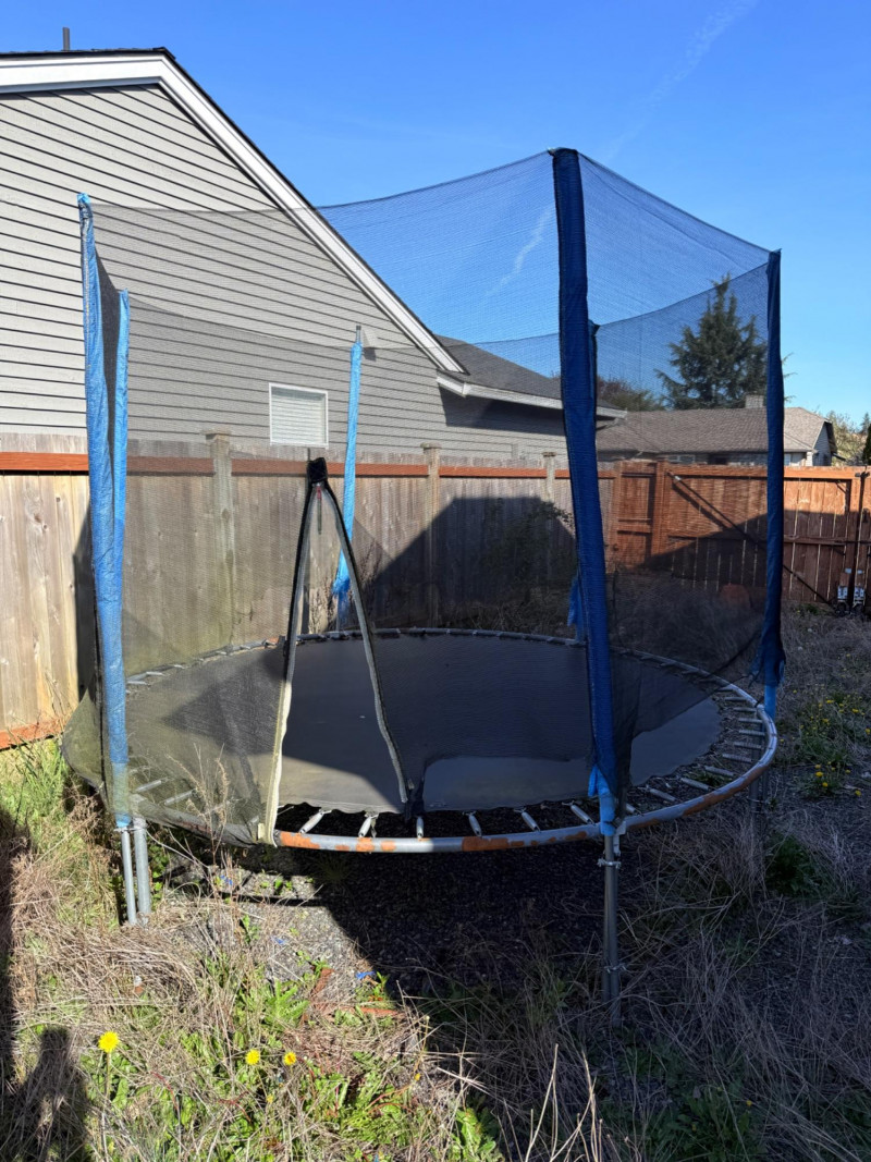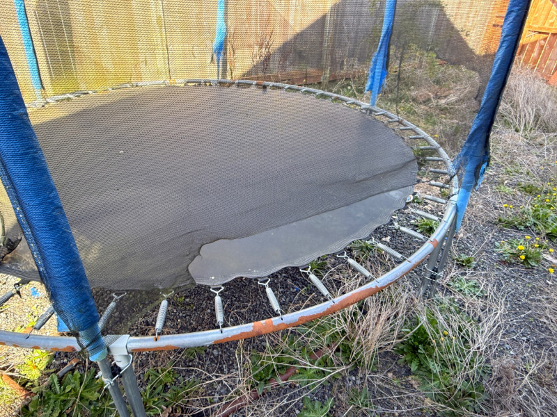 Outdoor Trampoline Bidding on this lot is an agreement that: (1) You will have 2 or 3 capable, able bodied persons to lift and load at a minimum. (2) You will bring a hand truck and/or any other tools needed to remove this item. If these steps are not followed your next item will be forfeit and no refund given.