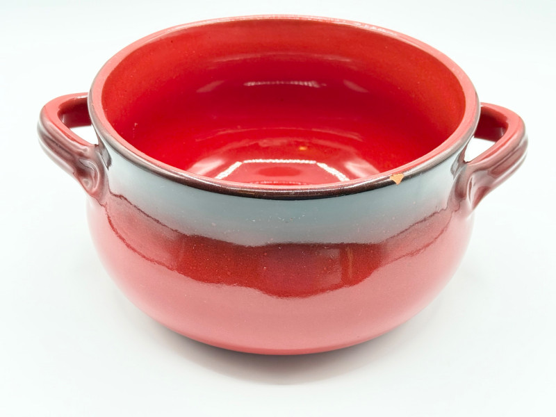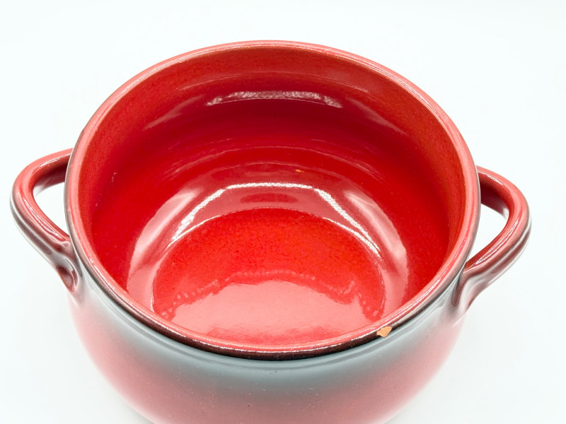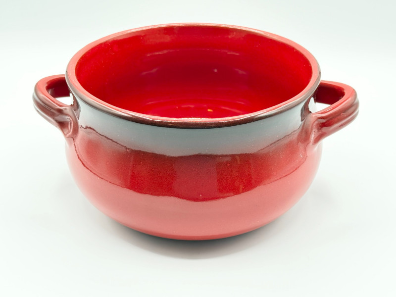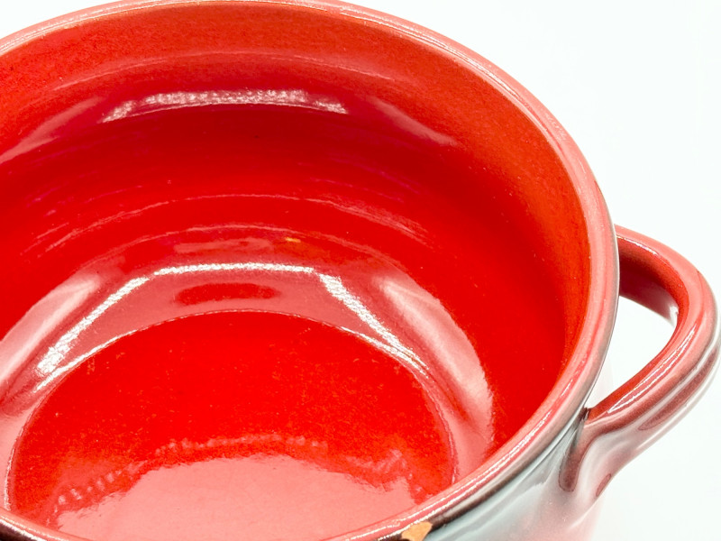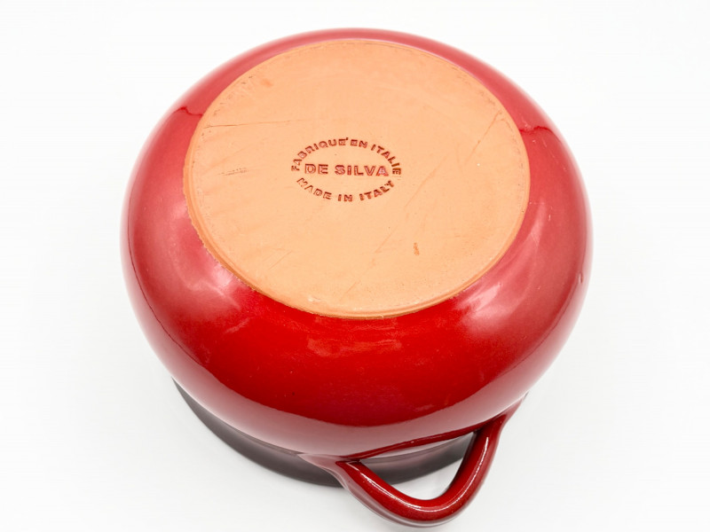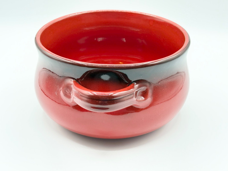 De Silva Italian Pottery Bowl – Red Drip Glaze, Double Handle