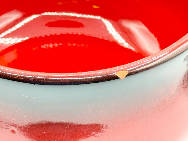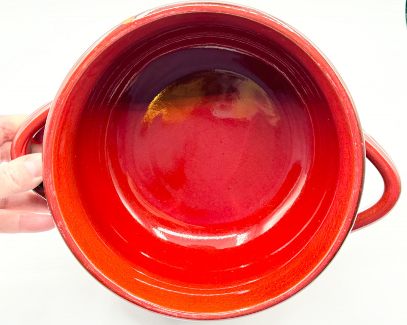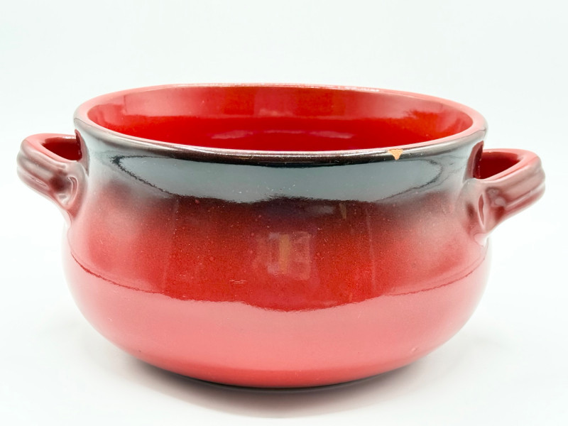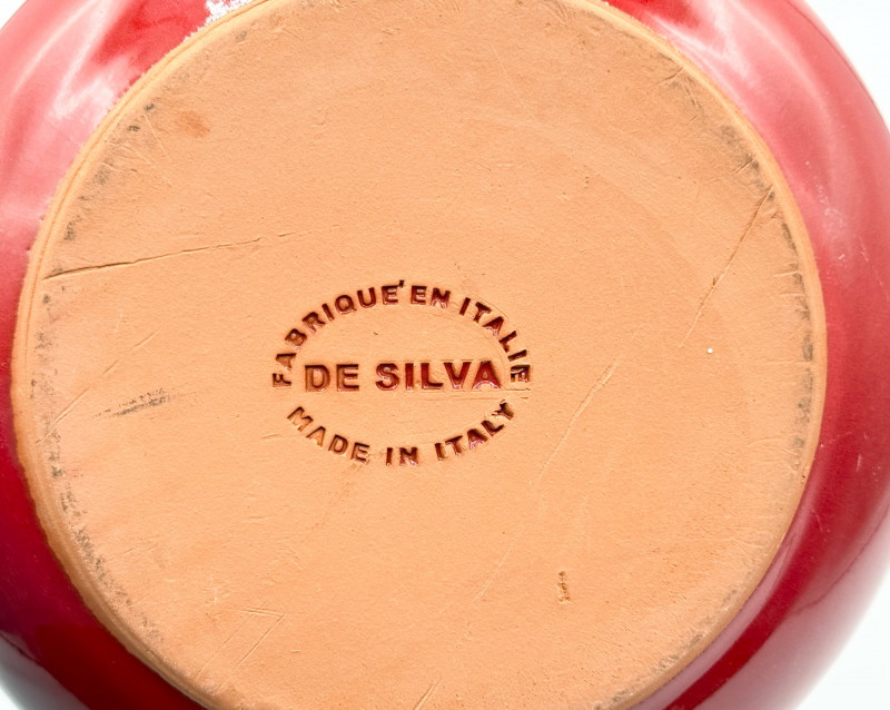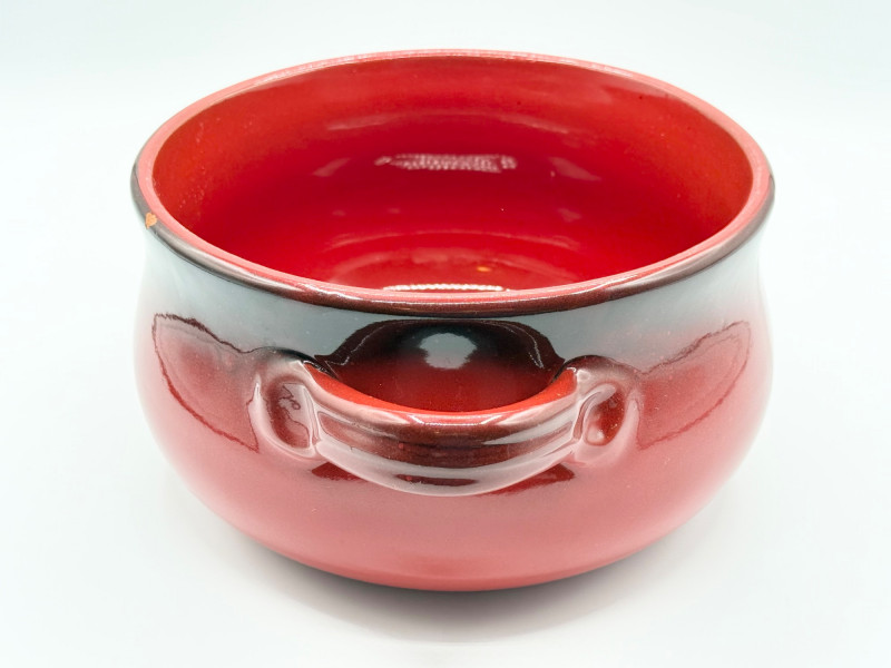Lot # 126 - De Silva Italian Pottery Bowl – Red Drip Glaze, Double Handle