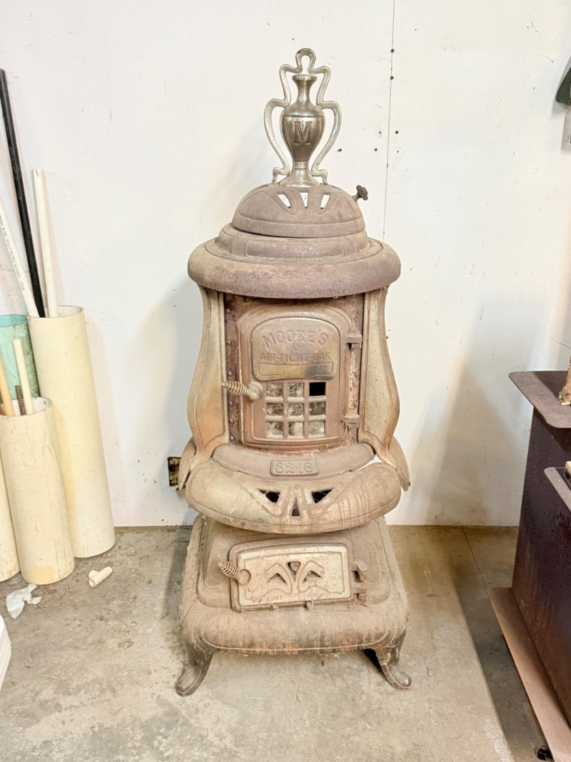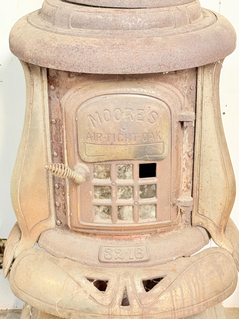Antique Moore’s “Air-Tight Oak” Cast Iron Stove (8216) Bidding on this lot is an agreement that: (1) You will have 2 capable, able bodied persons to lift and load at a minimum. (2) You will bring a hand truck and/or any other tools needed to remove this item. If these steps are not followed your next item will be forfeit and no refund given.