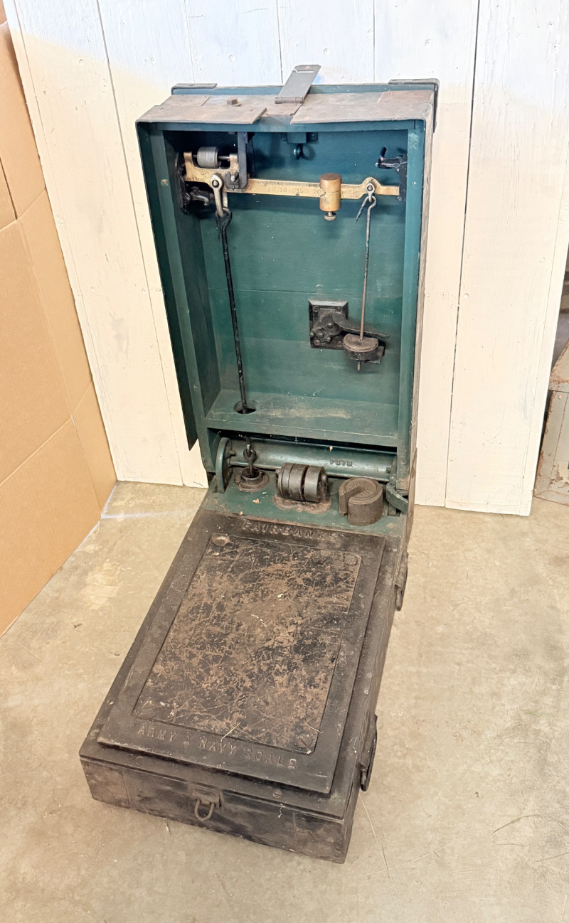 Antique Fairbanks Army / Navy Scale Open Case: Bidding on this lot is an agreement that: (1) You will have 2 capable, able bodied persons to lift and load at a minimum. (2) You will bring a hand truck and/or any other tools needed to remove this item. If these steps are not followed your next item will be forfeit and no refund given.