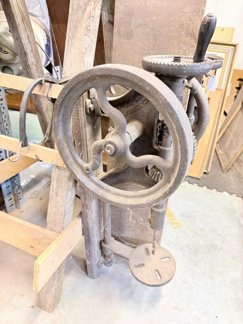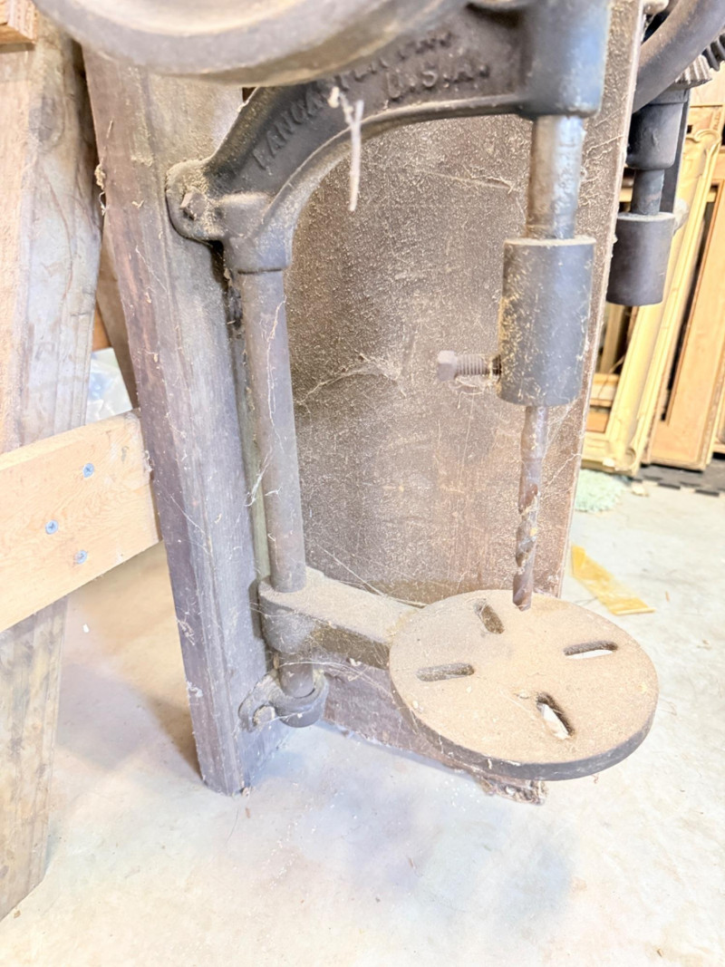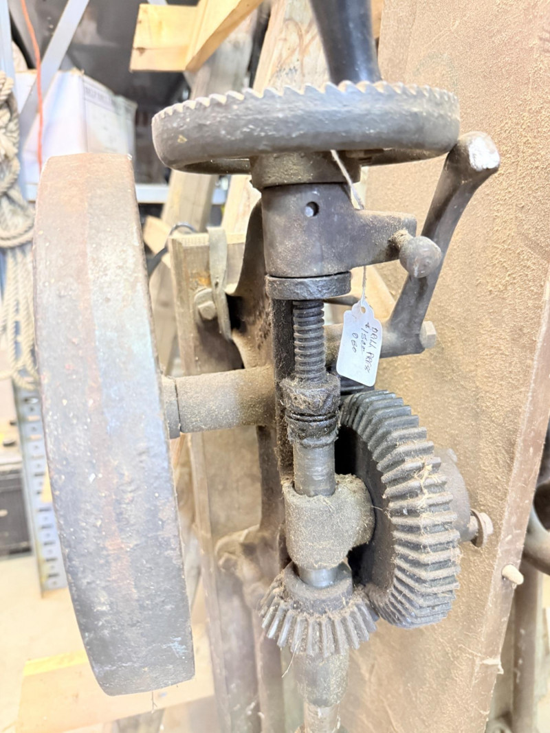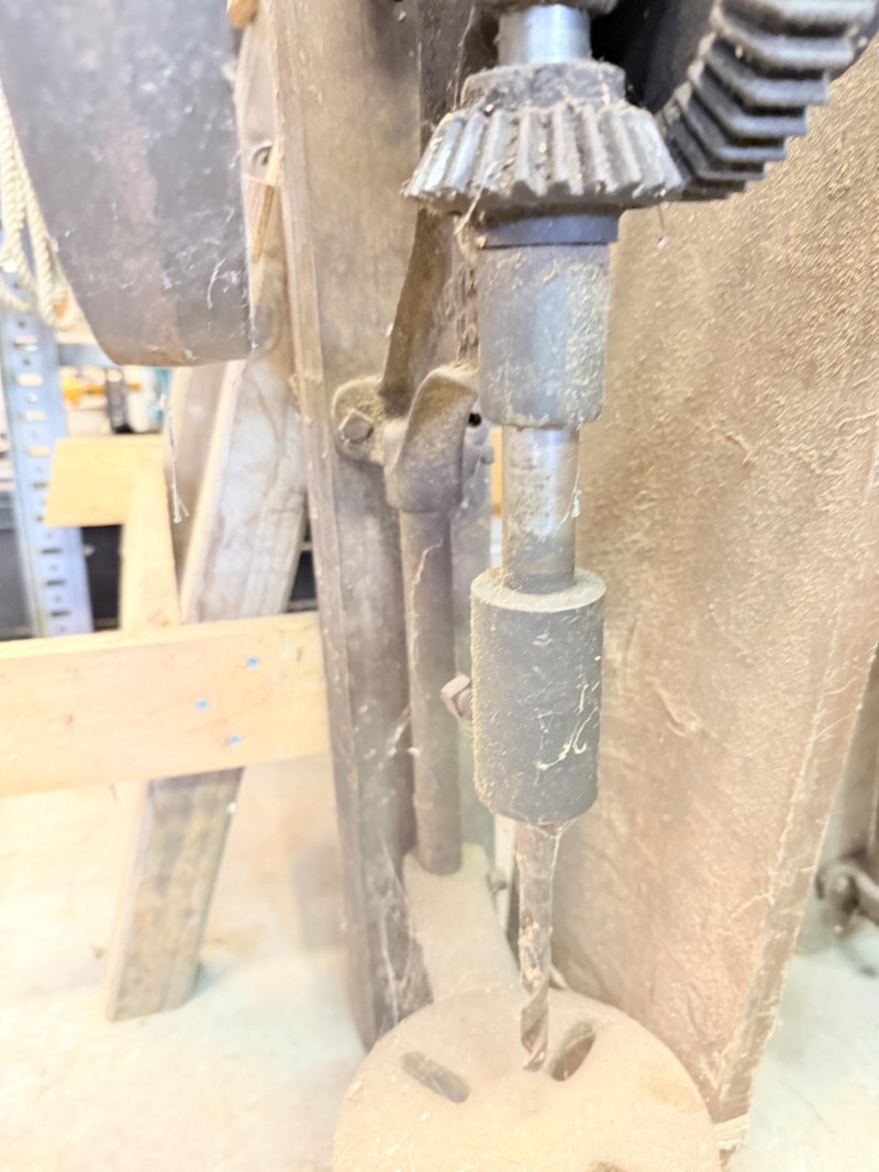 Vintage Cast Iron Post-Mounted Drill Press Bidding on this lot is an agreement that: (1) You will have 2 capable, able bodied persons to lift and load at a minimum. (2) You will bring a hand truck and/or any other tools needed to remove this item. If these steps are not followed your next item will be forfeit and no refund given.