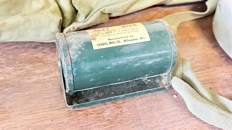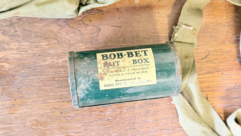 Lot # 34 - Vintage Canvas Bag, Canteen & Bob-Bet Bait Box