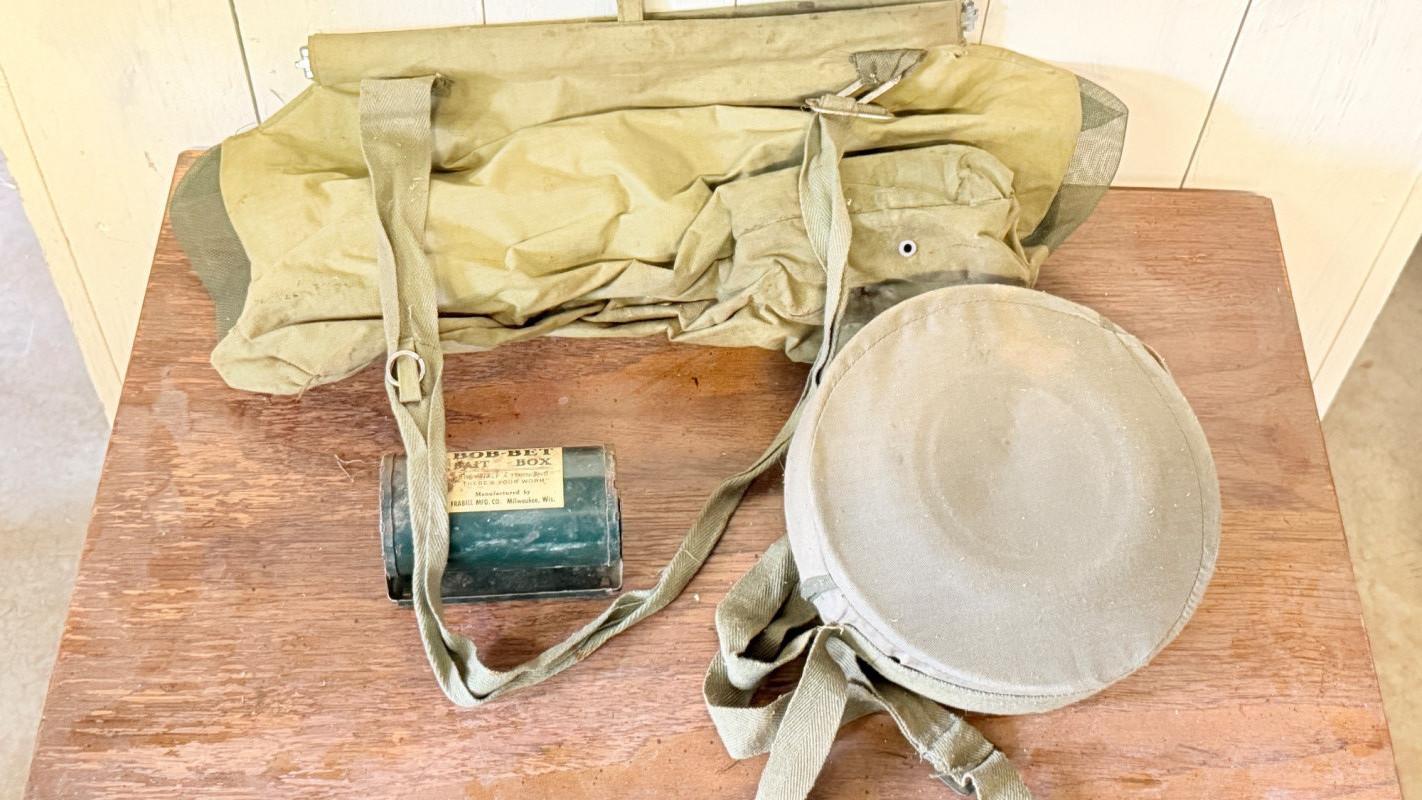 Vintage Canvas Bag, Canteen & Bob-Bet Bait Box