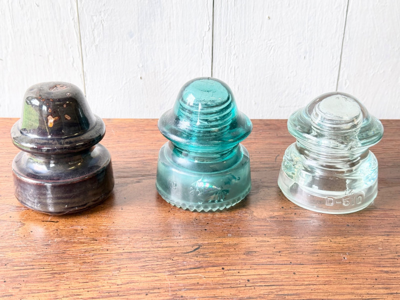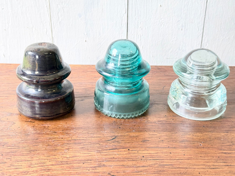 Set of 3 Vintage Glass Electrical Insulators (#2)