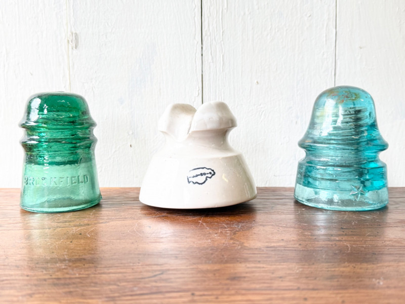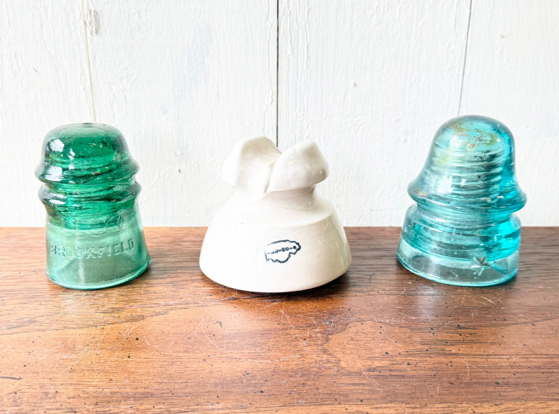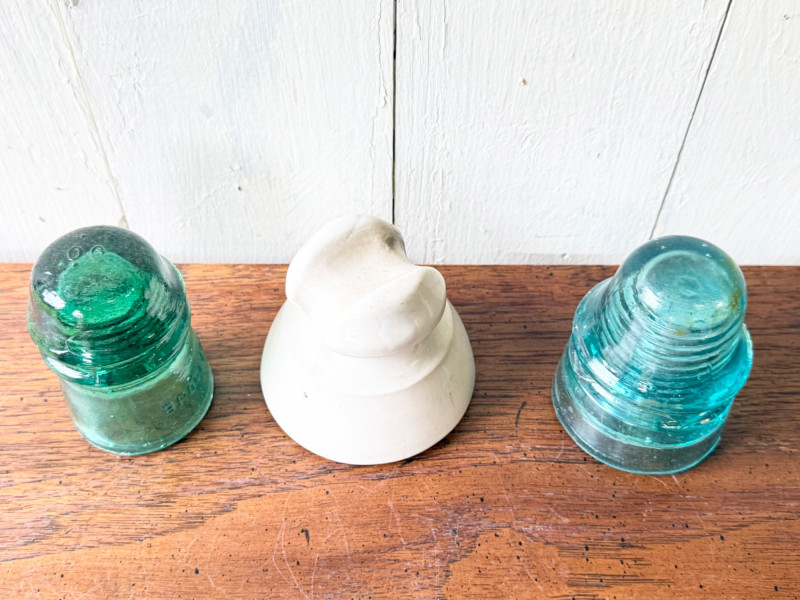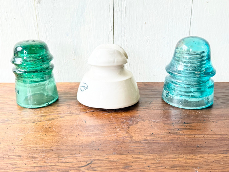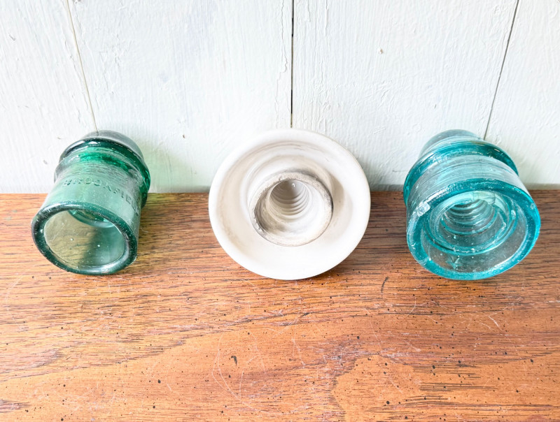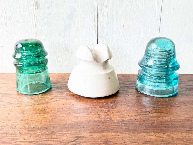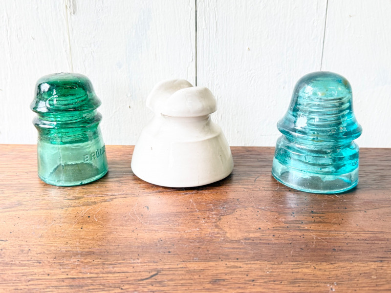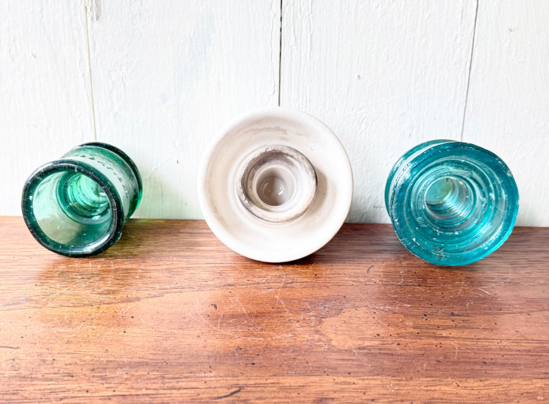 Set of 3 Vintage Glass Electrical Insulators (#4)